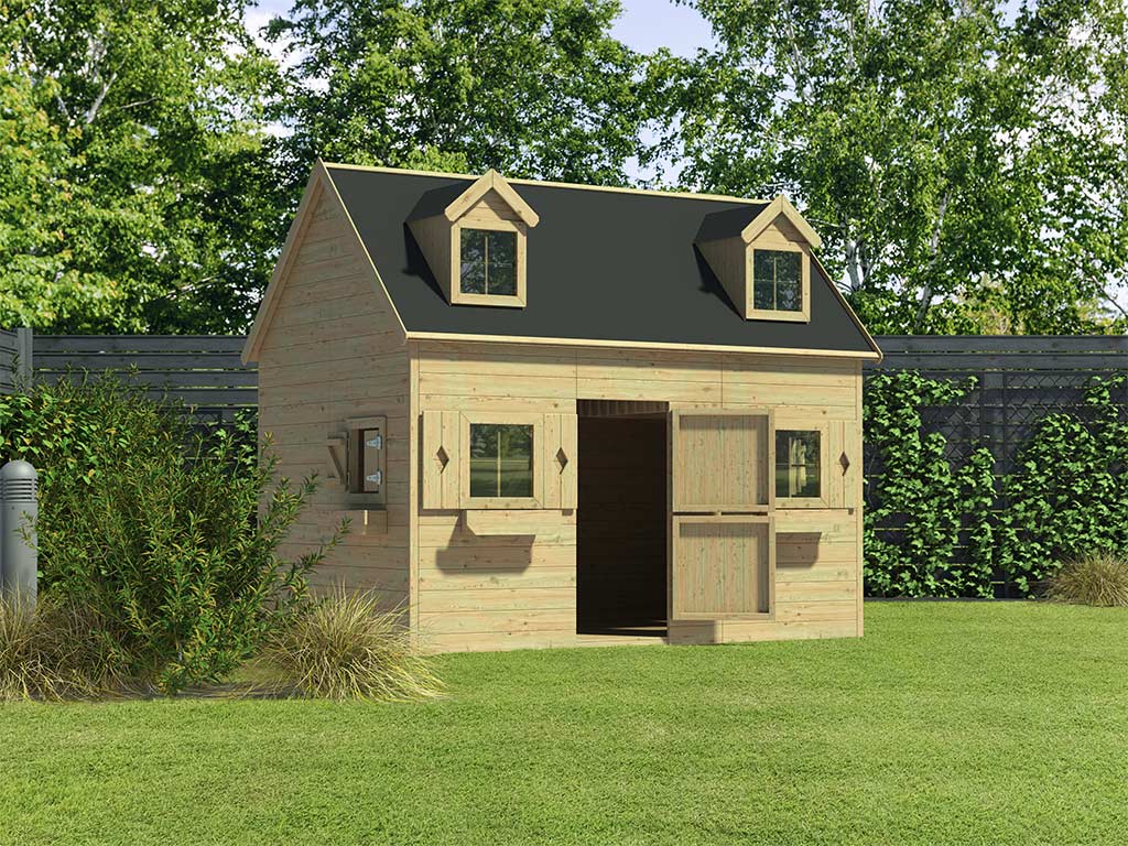 Das Spielhaus mit dekorativem Schornstein auf der Rückseite ist mit einem Schlafboden ausgestattet, der durch eine Treppe im Inneren des Spielhauses erklommen werden kann. Das geräumige Spielhaus bietet jede Menge Platz für eine gemütliche Sitzecke und eine Kinderküche. Beachte hierzu auch unser großes Spielzeug-Sortiment. - Stabile Grundkonstruktion