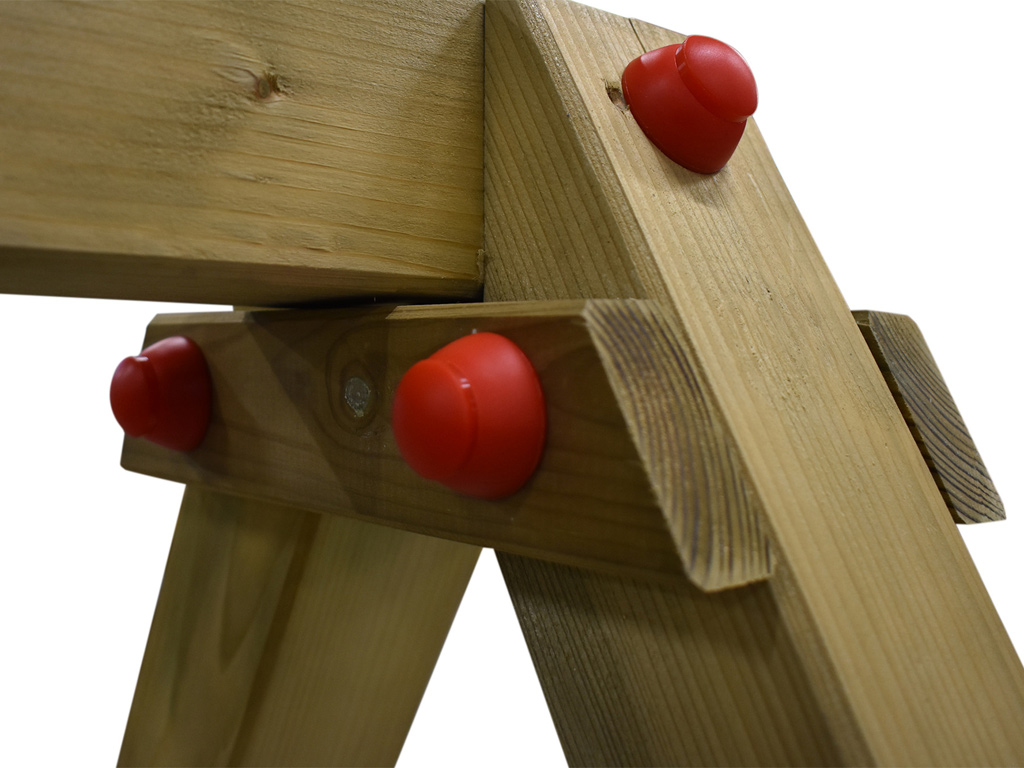 Der Schaukelbalken und die zwei Schaukelpfosten gewährleisten mit einer Stärke von 9 x 9 cm höchste Stabilität und Sicherheit. Der rote Schaukelsitz, die Strickleiter mit Holzsprossen sowie die Sicherheits-Schraub-Abdeckkappen sind im Lieferumfang bereits enthalten. - 120 cm Podest