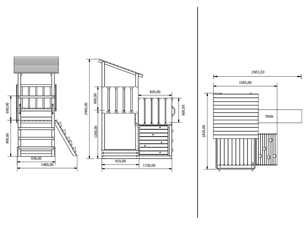 B x T x H: 183,6 x 296,3 x 246,5 cm, inkl. Kletterwand + 2 Spielzubehör, inkl. Rutsche grau