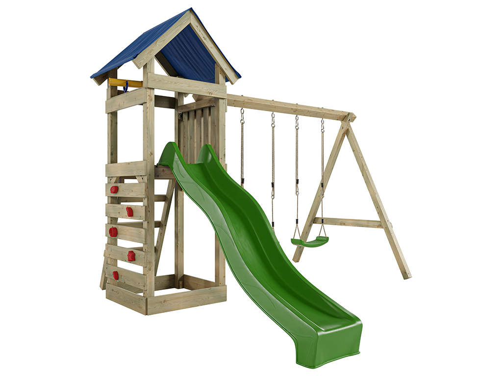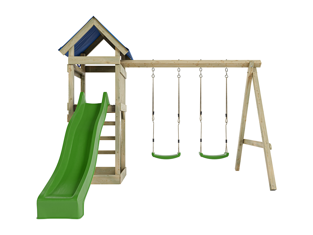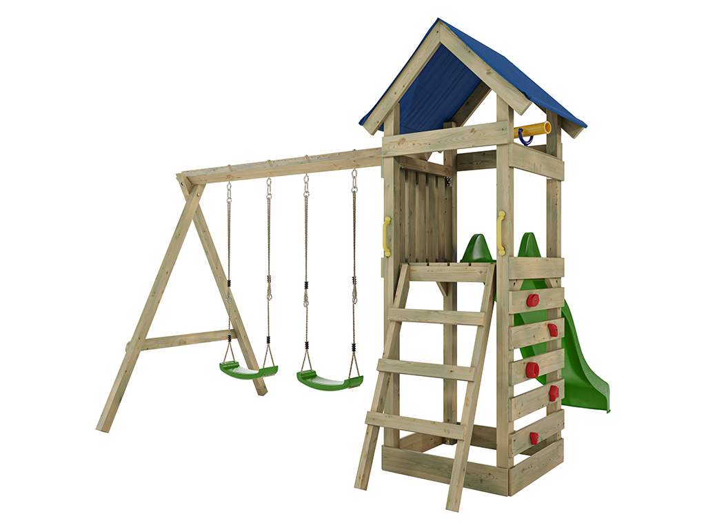 - Inklusive einer Doppelschaukel in Grün mit 9 x 9 cm starkem Schaukelbalken.