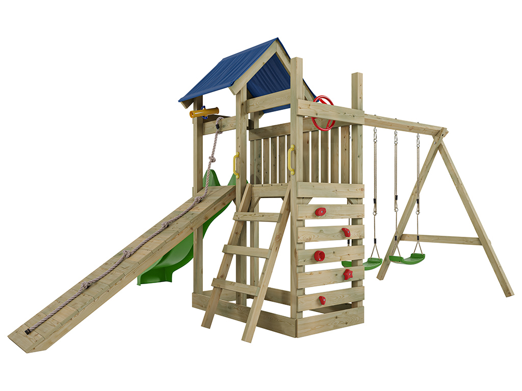 - Inklusive Rutsche in Grün mit 9 x 9 cm starkem Schaukelbalken.