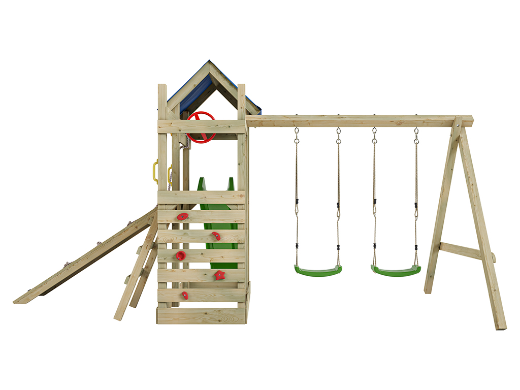 - Inklusive Rutsche in Grün mit 9 x 9 cm starkem Schaukelbalken.
