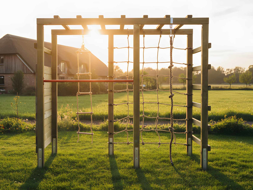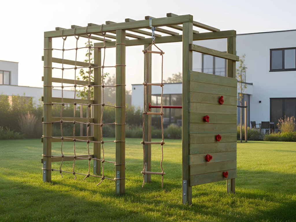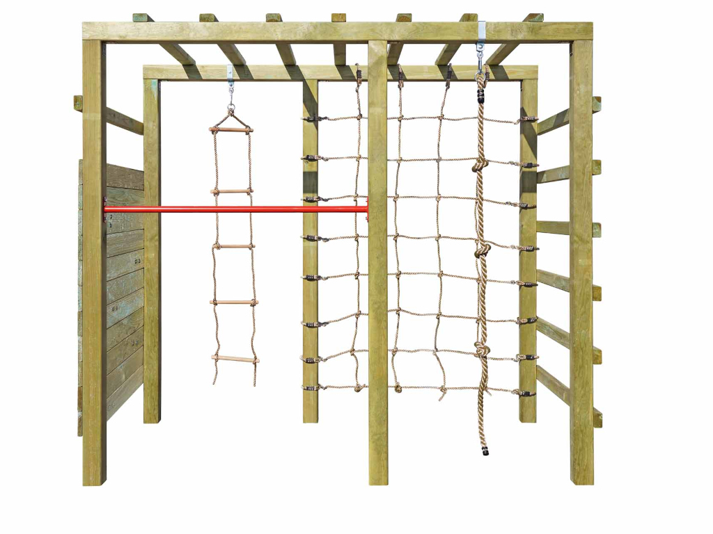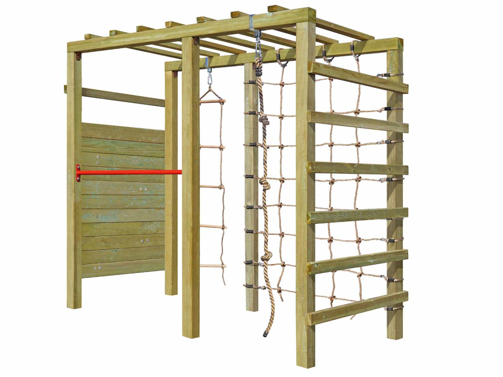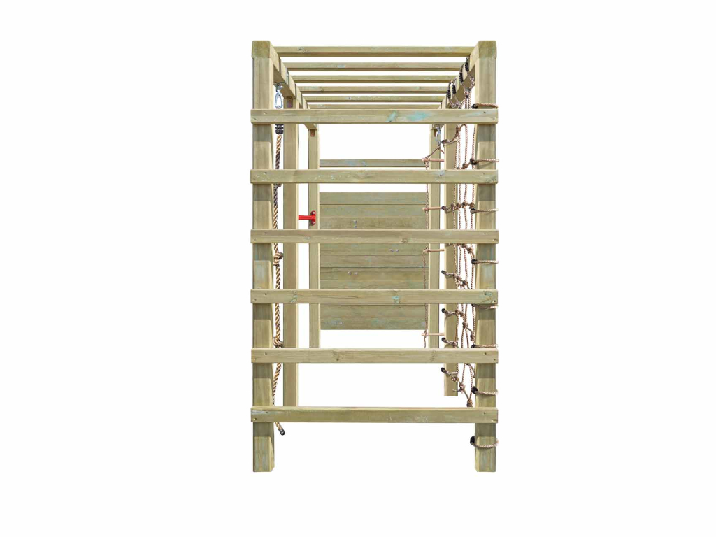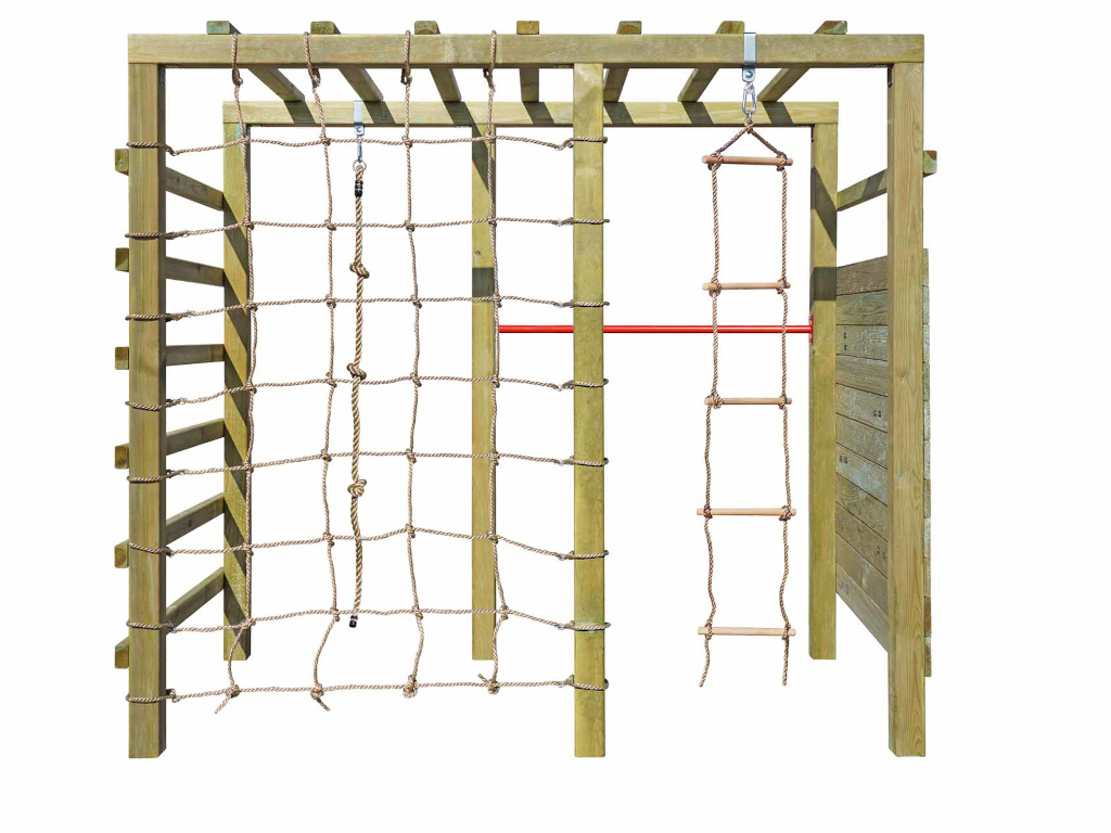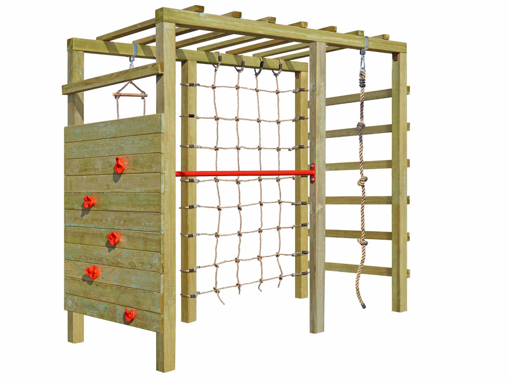 B x T x H: 240 x 120 x 219 cm, inkl. Kletterwand + Kletternetz, inkl. Kontenseil + Strickleiter + Reckstange