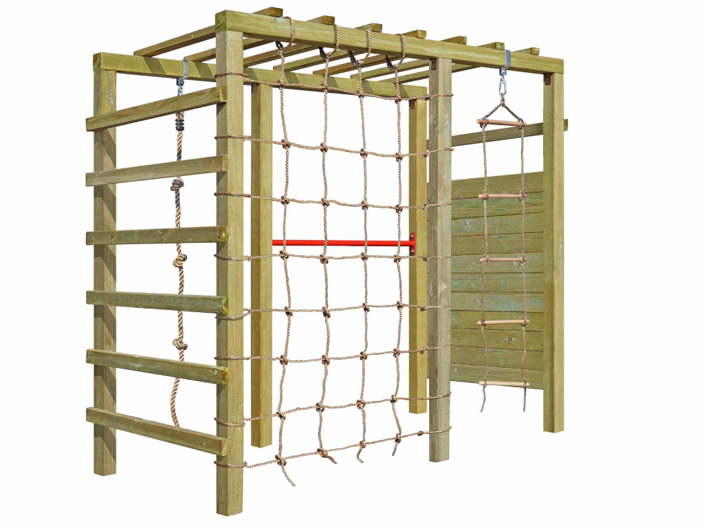 B x T x H: 240 x 120 x 219 cm, inkl. Kletterwand + Kletternetz, inkl. Kontenseil + Strickleiter + Reckstange