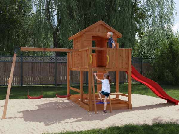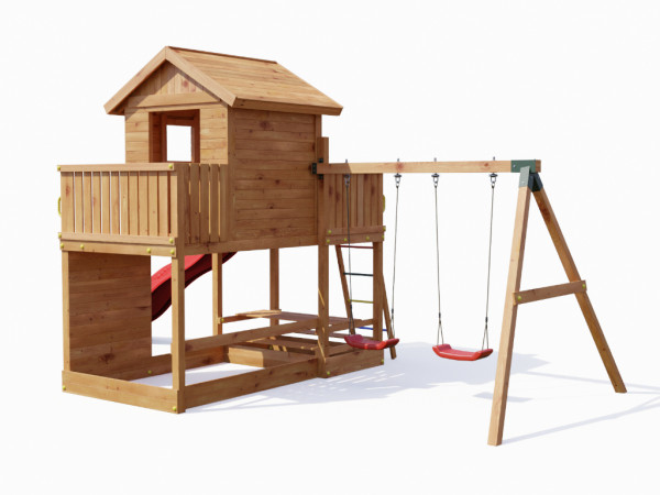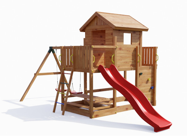 Stelzenhaus Mars teakfarben inkl. Rutsche rot
