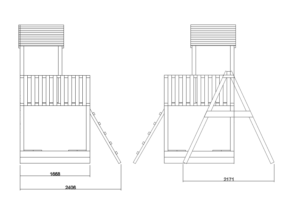 Die großzügige und zum Teil überdachte 145 cm hohe Plattform wird über eine stabile Leiter mit aufgesetzten Holzsprossen erreicht. Für die Sicherheit deines Kindes sind bereits vier Haltegriffe im Lieferumfang enthalten. - Inkl. Doppelschaukel