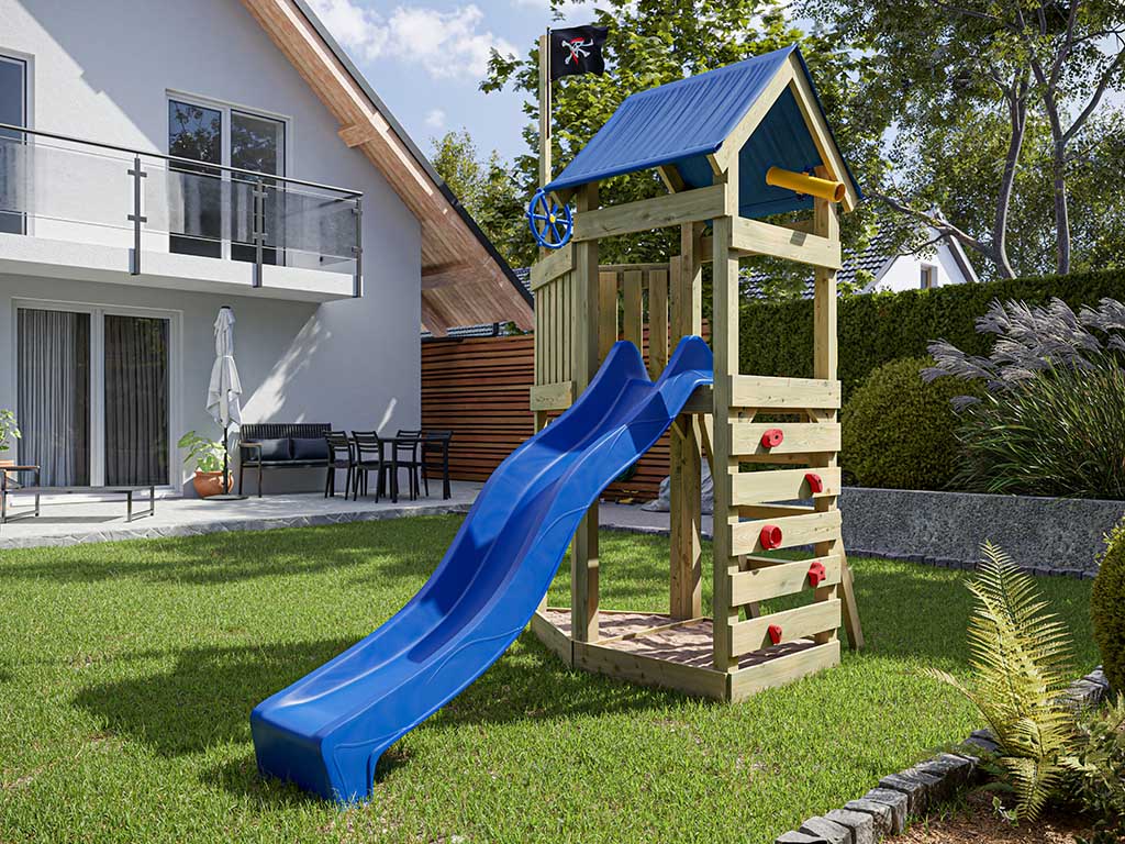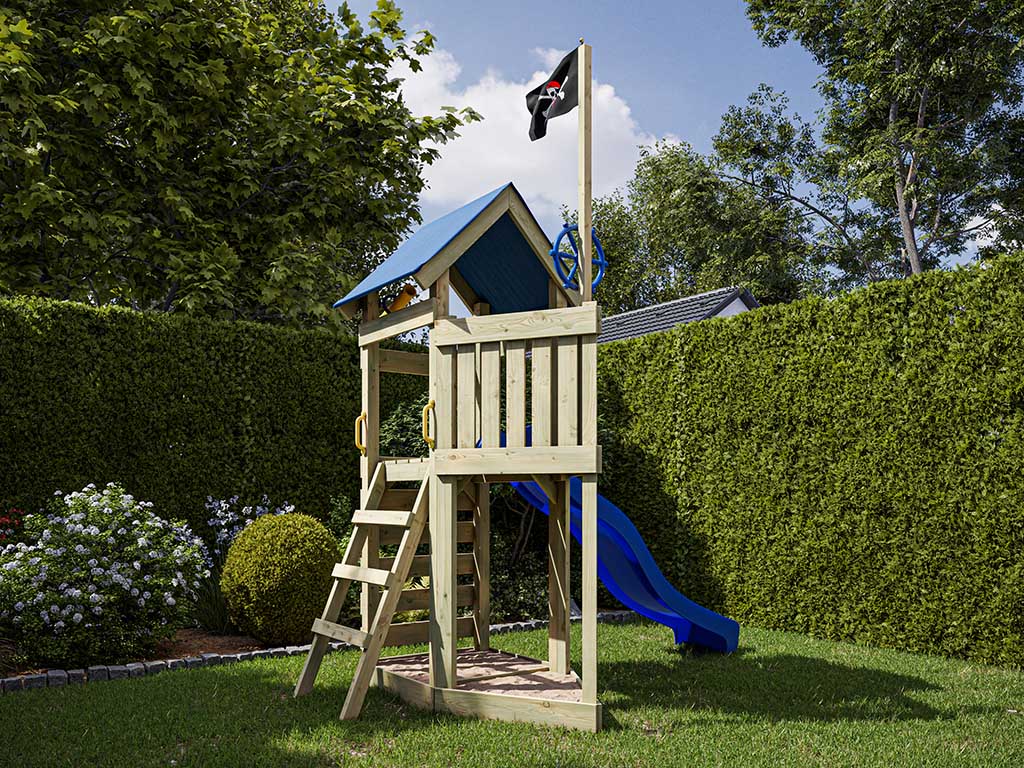 Spielturm Pirat Captain Jolly KDI inkl. Rutsche blau