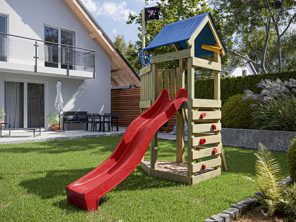 Spielturm Pirat Captain Jolly KDI inkl. Rutsche rot