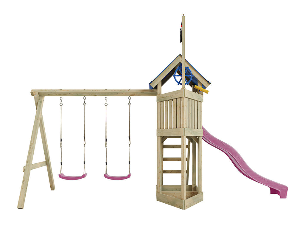Outgarden Spielturm Captain Jolly KDI inkl. Doppelschaukel inkl. Rutsche pink + Sitze pink