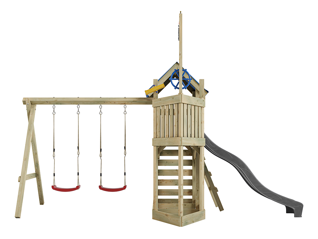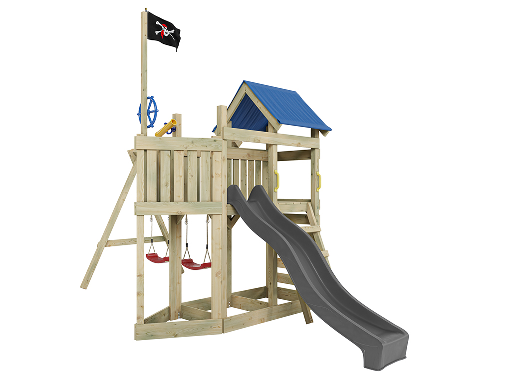 Spielturm Pirat Captain Snappy KDI mit Doppelschaukel inkl. Rutsche grau + Sitze rot