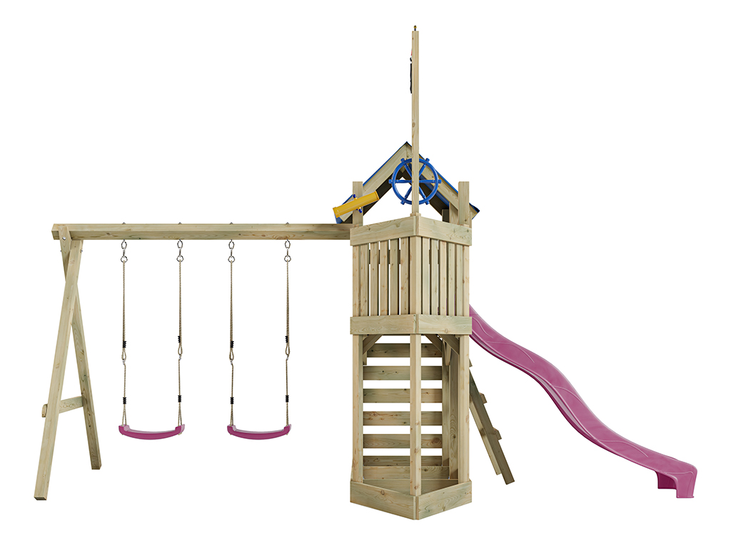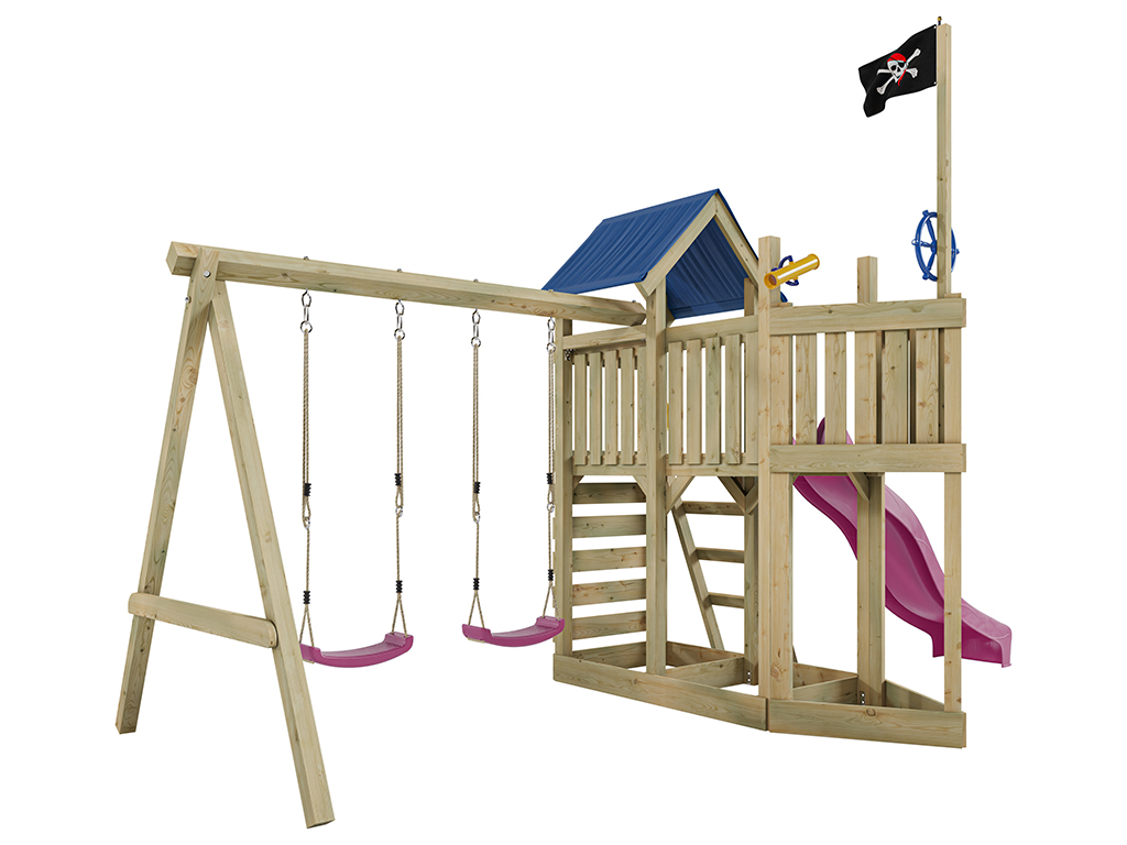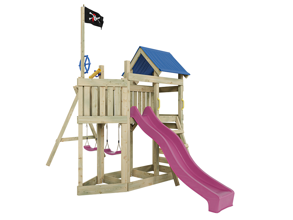Spielturm Pirat Captain Snappy KDI mit Doppelschaukel inkl. Rutsche pink + Sitze pink