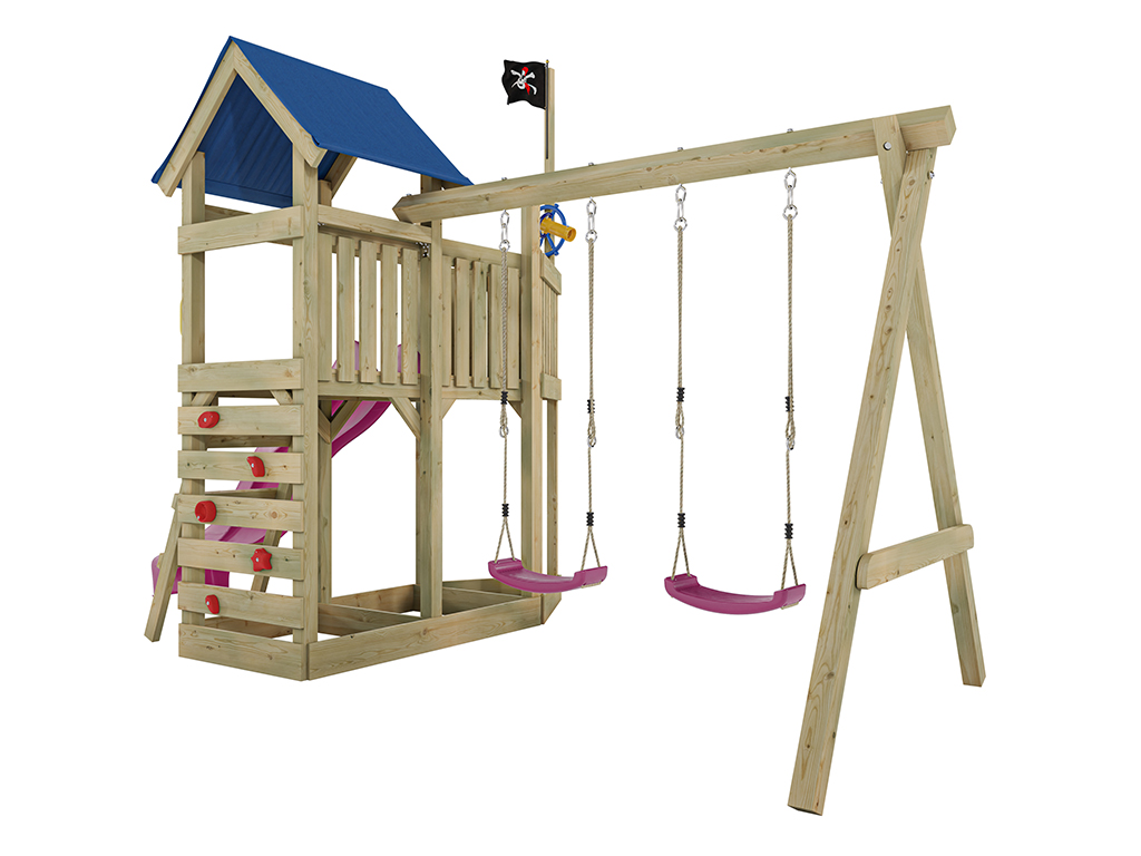 - Inklusive einer Doppelschaukel in Pink mit 9 x 9 cm starkem Schaukelbalken.