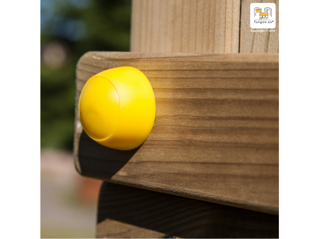Noch mehr Abwechselung bringen die Anbau mit zwei Schaukeln, die mehr Platz zum Spielen schafft und problemlos auch von mehreren Kindern gleichzeitig benutzt werden kann. Das Leitermodul ist mit den abgerundeten Metallsprossen aus Kunststoff ausgestattet. Sie sorgen für splitterfreie und glatte Greifflächen. Die Abdeckkappen für Schrauben, 6 Haltegriffe und Plattformbrüstung garantieren die zusätzliche Sicherheit beim Spielen.