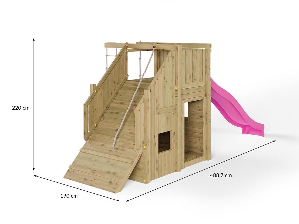 B x T x H: 488,7 x 190 x 220 cm, inkl. Kletterwand + Knotenseil + Strickleiter, inkl. Rampe + Rutsche pink