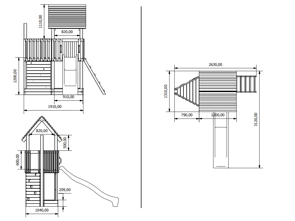 B x T x H: 263 x 131 x 291 cm, inkl. Kletterwand, Sandkasten, Rutsche