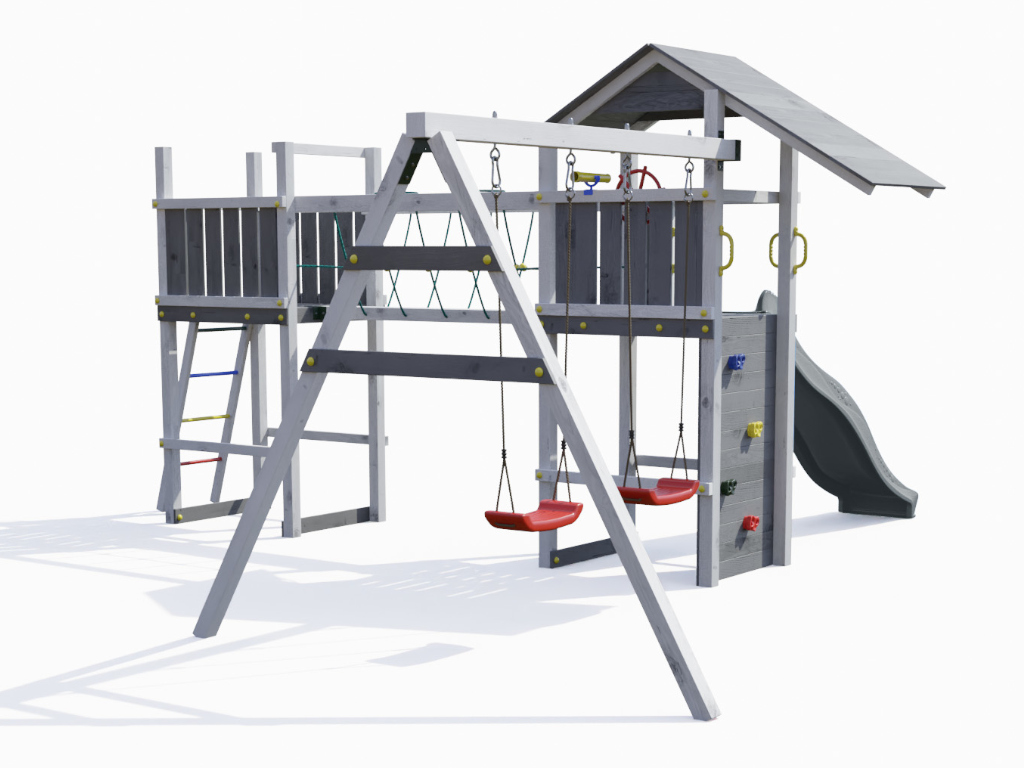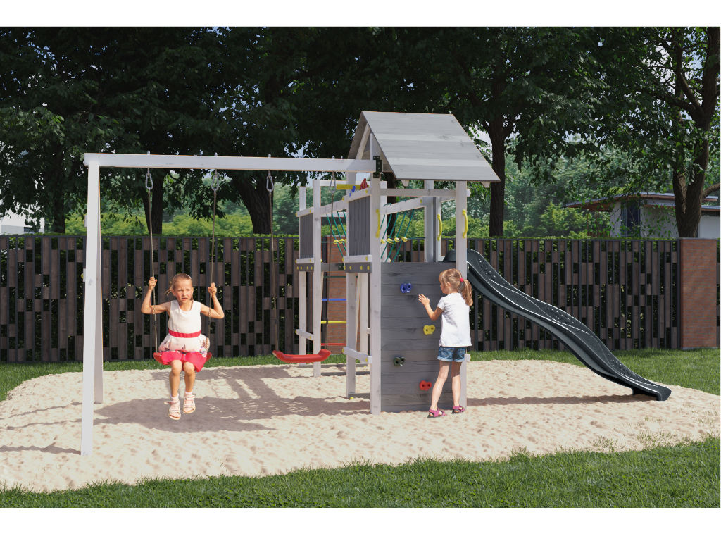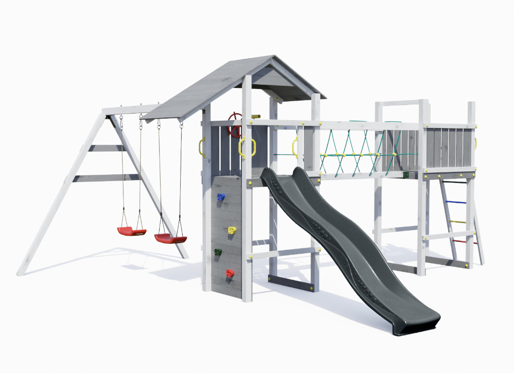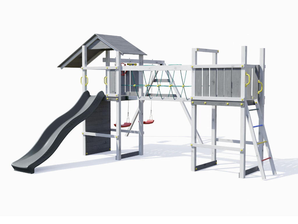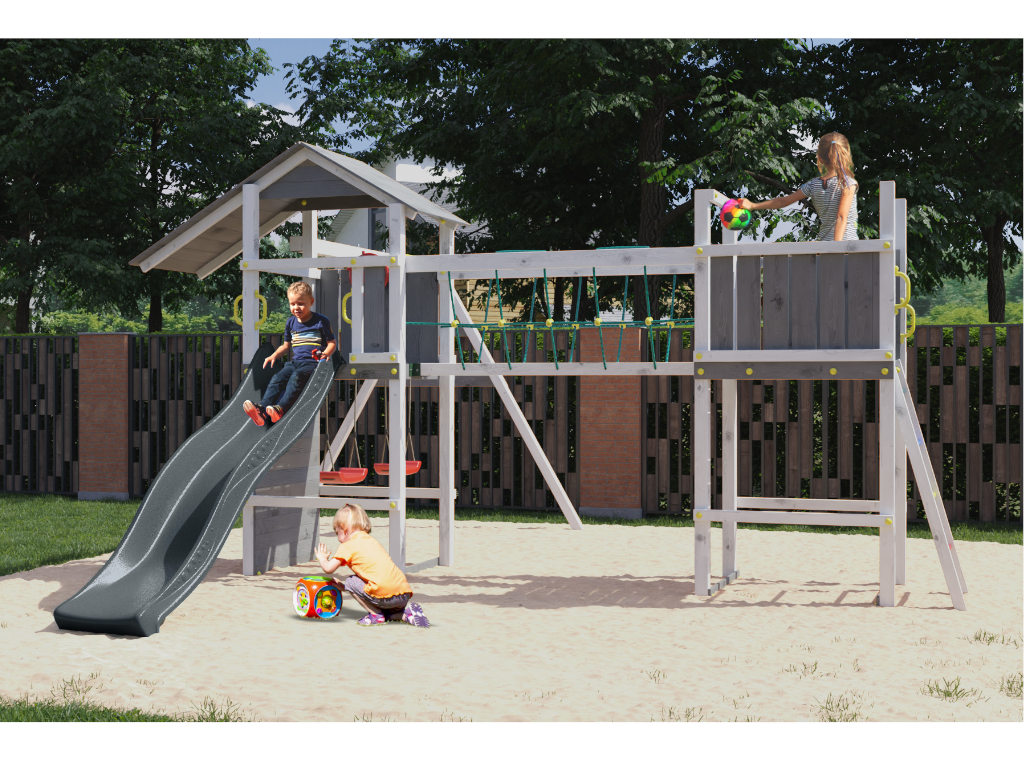 Fungoo Spielturm Smart 5 Bridge grau-weiß inkl. Rutsche grau