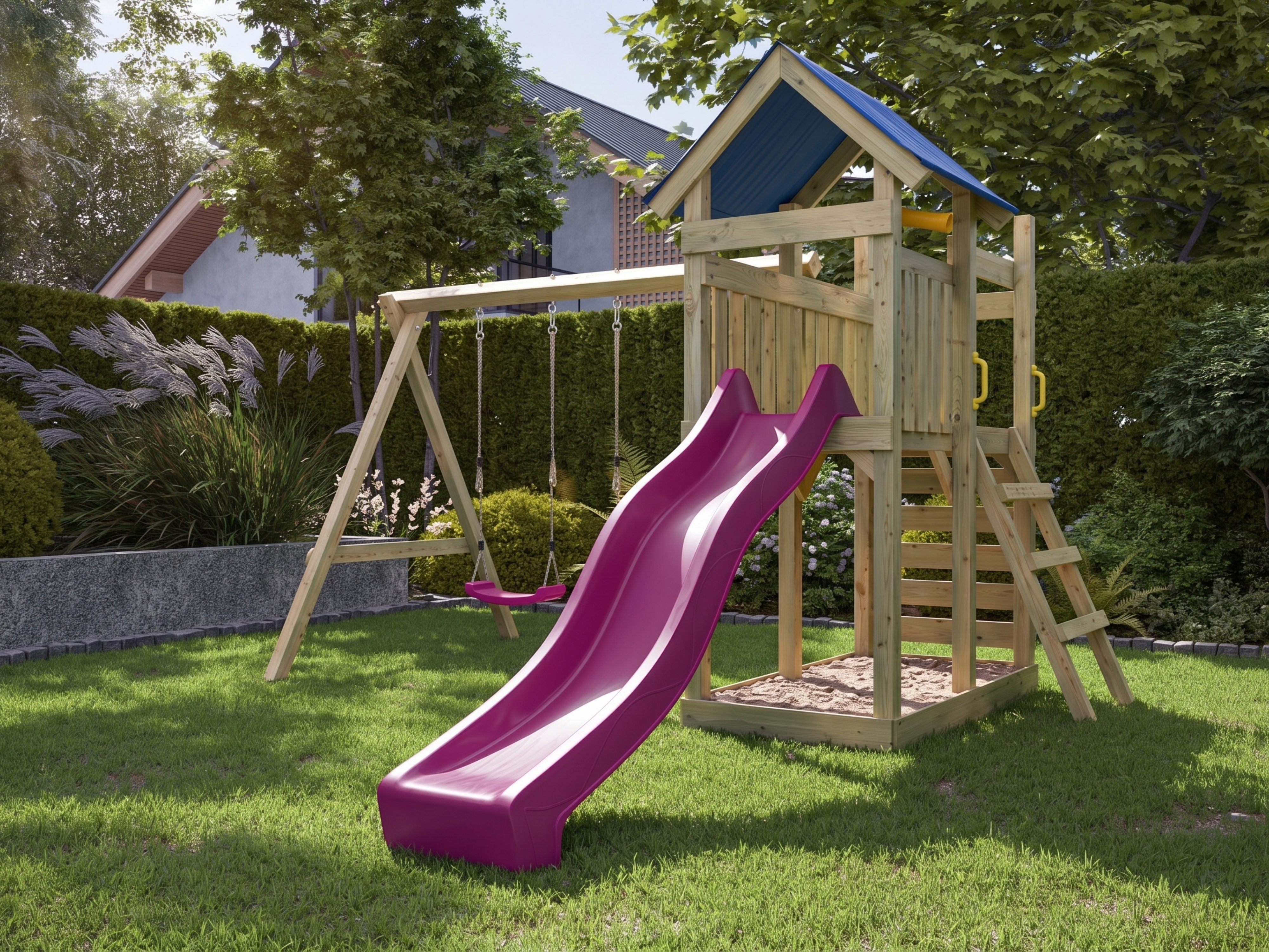 Outgarden Spielturm Speedy KDI inkl. Doppelschaukel inkl. Rutsche pink + Sitze pink