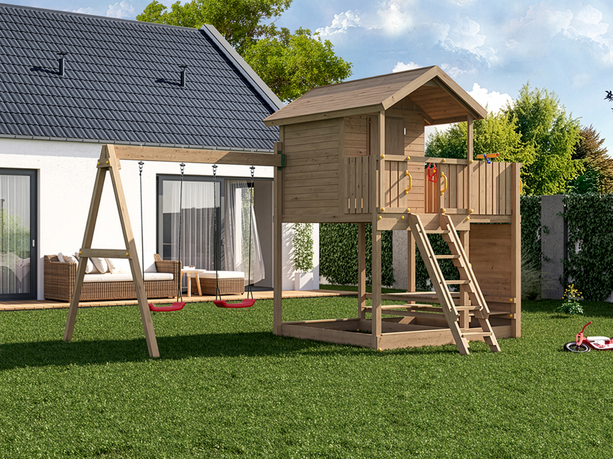 Bitte beachte unser großes Zubehör-Sortiment und erweitere deinen Spielturm z.B. um eine Rutsche, einen Briefkasten oder einen Babyschaukelsitz. Auch eine dekorative Dacheindeckung mit Schindeln oder selbstklebender Dachbahn werten den neuen Spielturm deiner Kinder weiter auf.