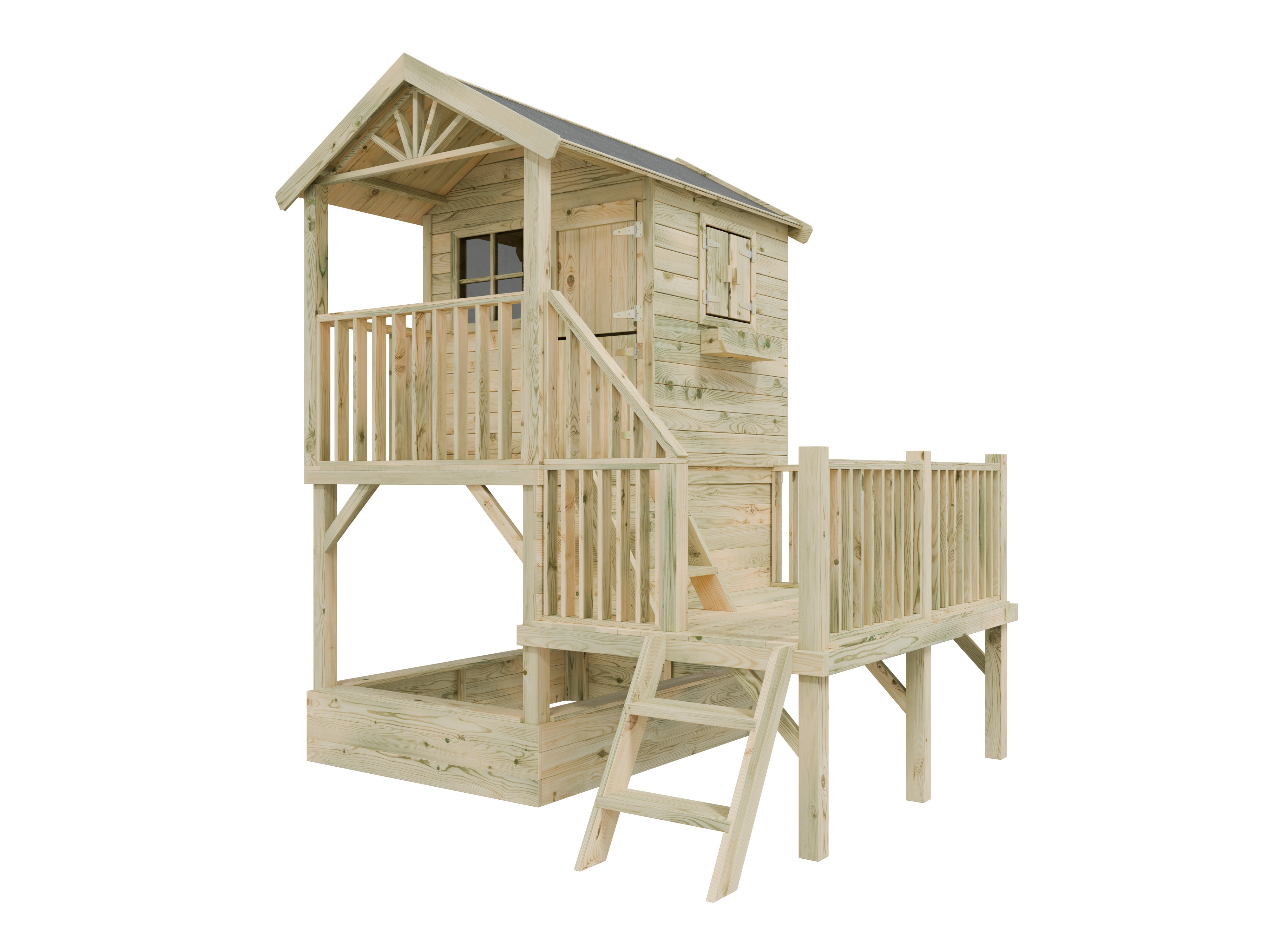 Das große Stelzenhaus mit großzügigem Seitenpodest lässt Kinderherzen höher schlagen.