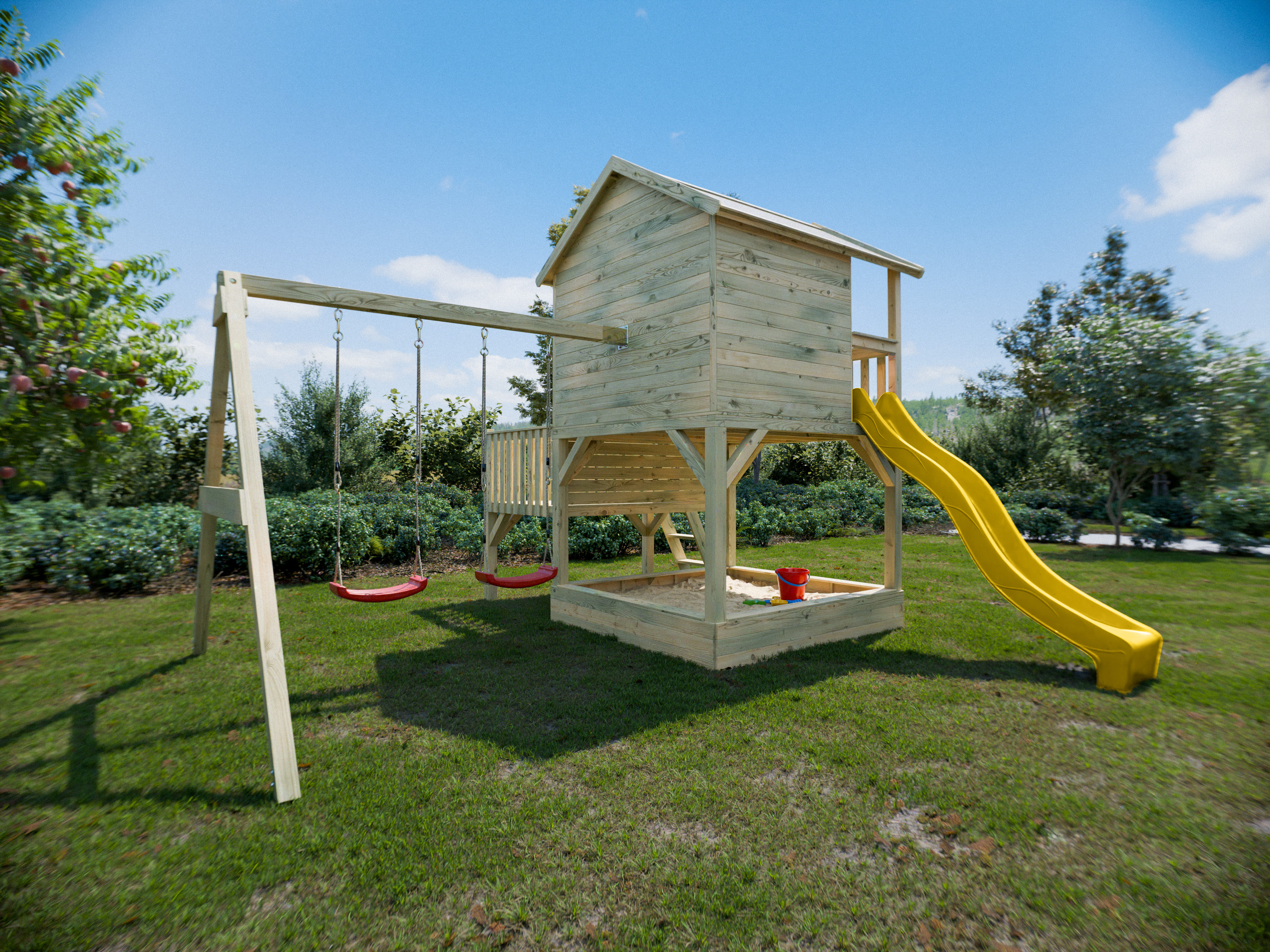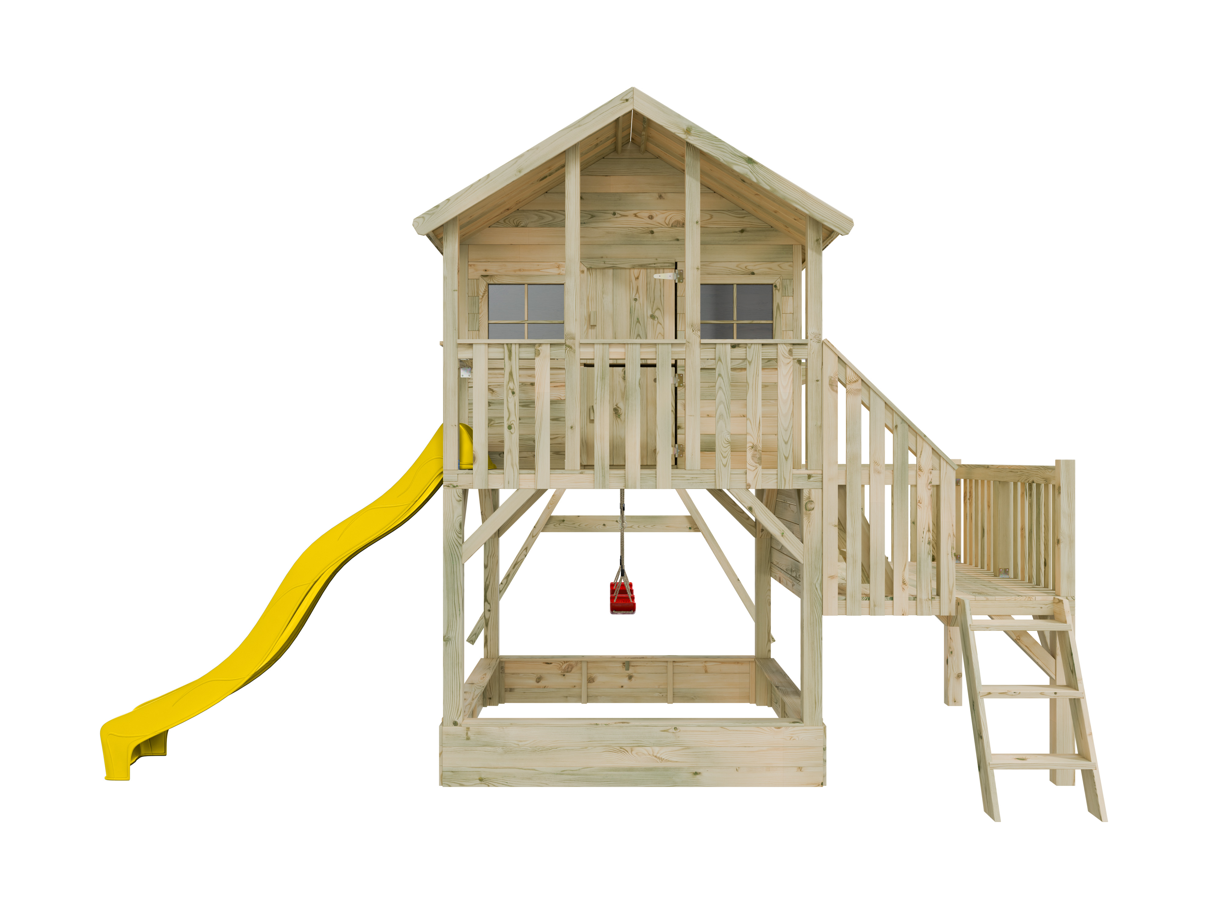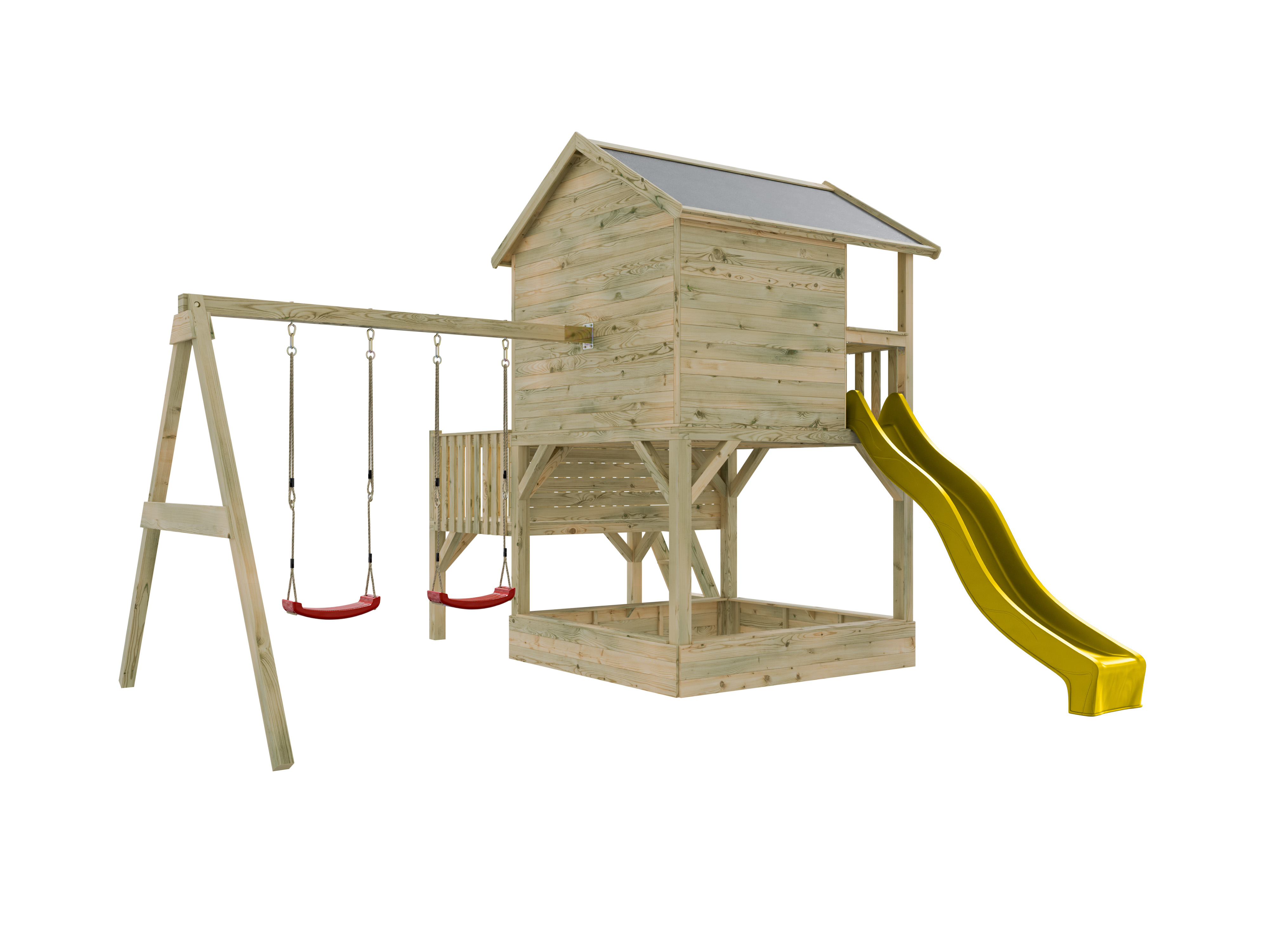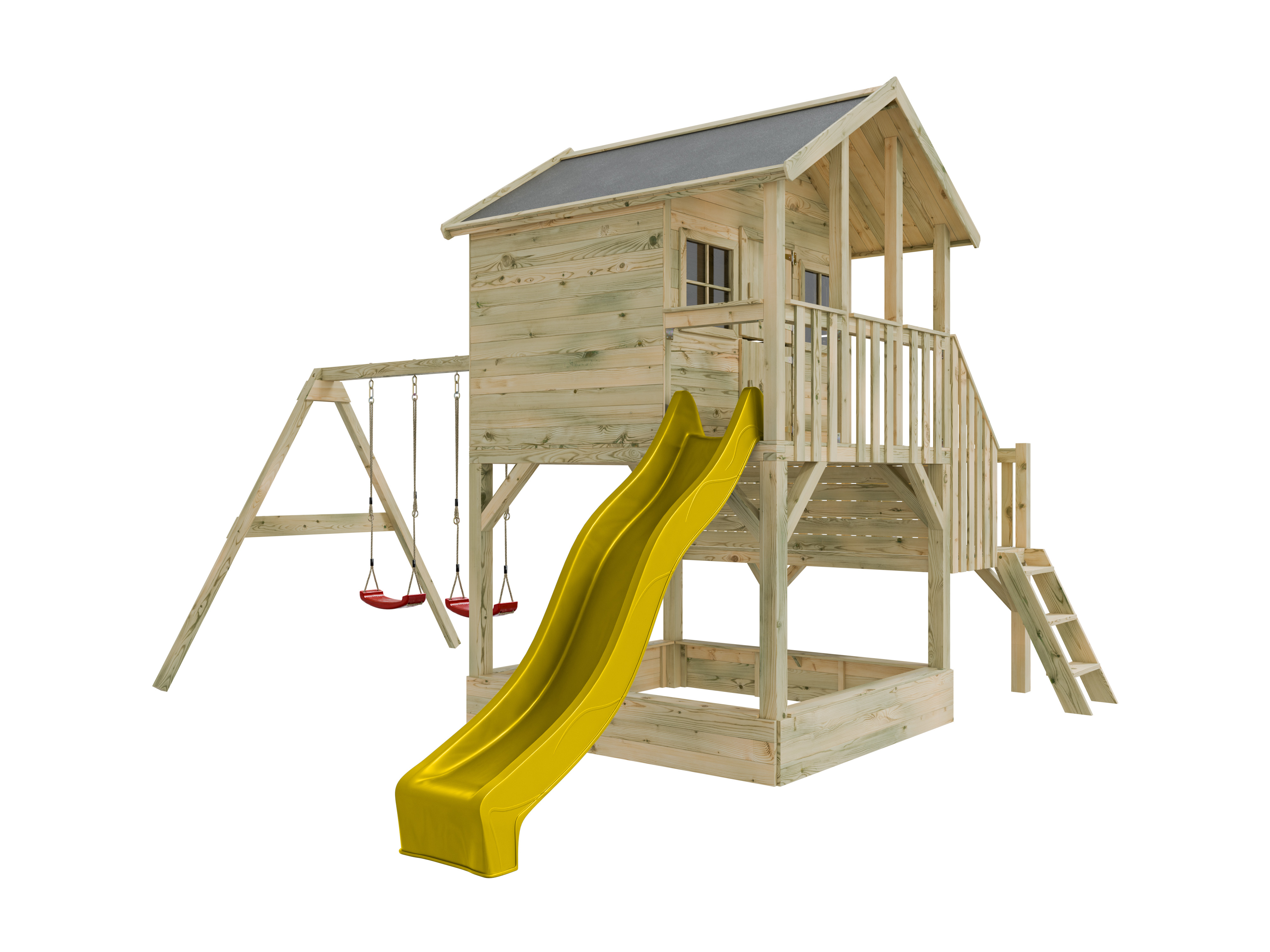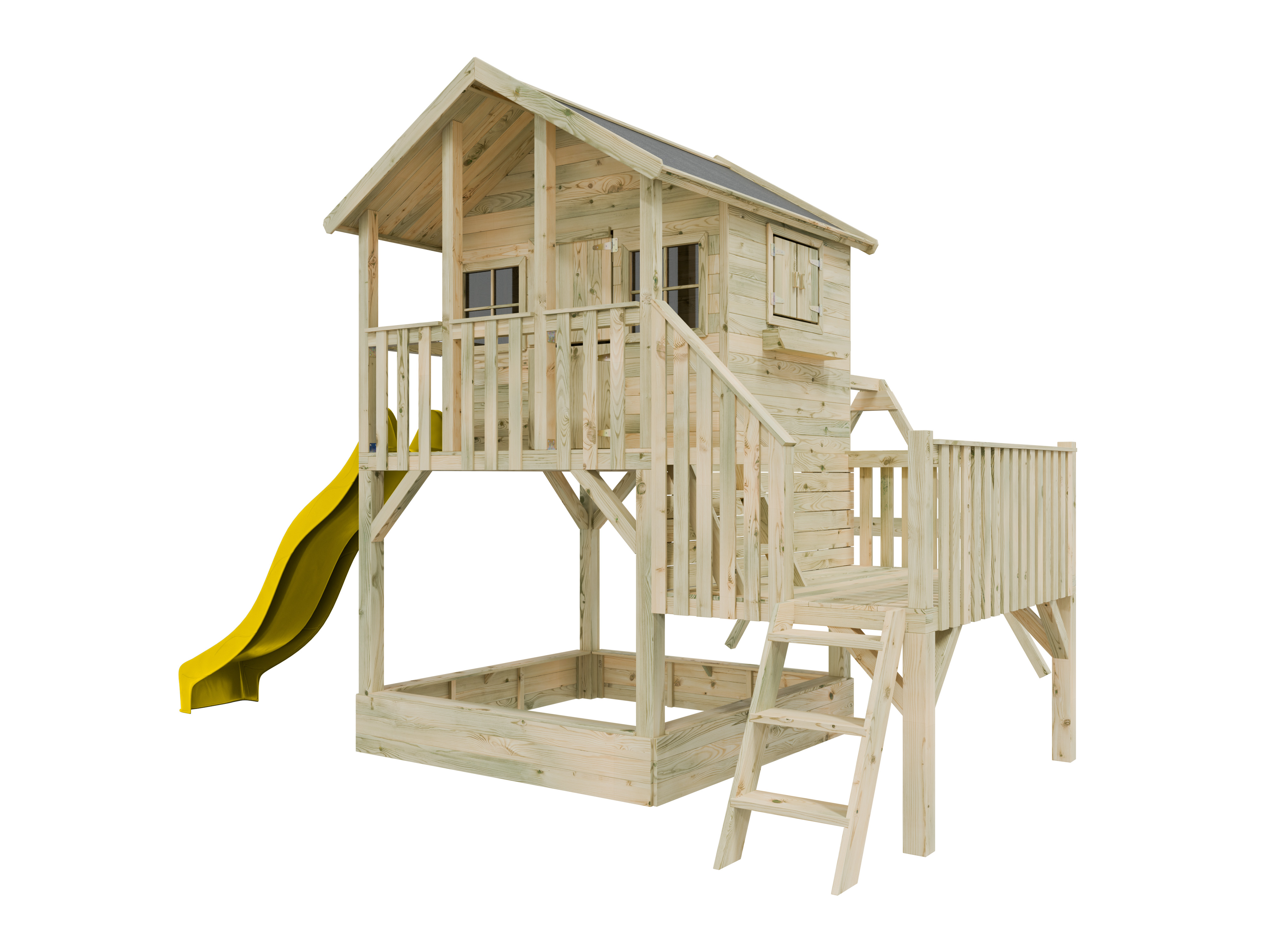 Stelzenhaus Big House L mit Sandkasten KDI inkl. Doppelschaukel und Rutsche gelb