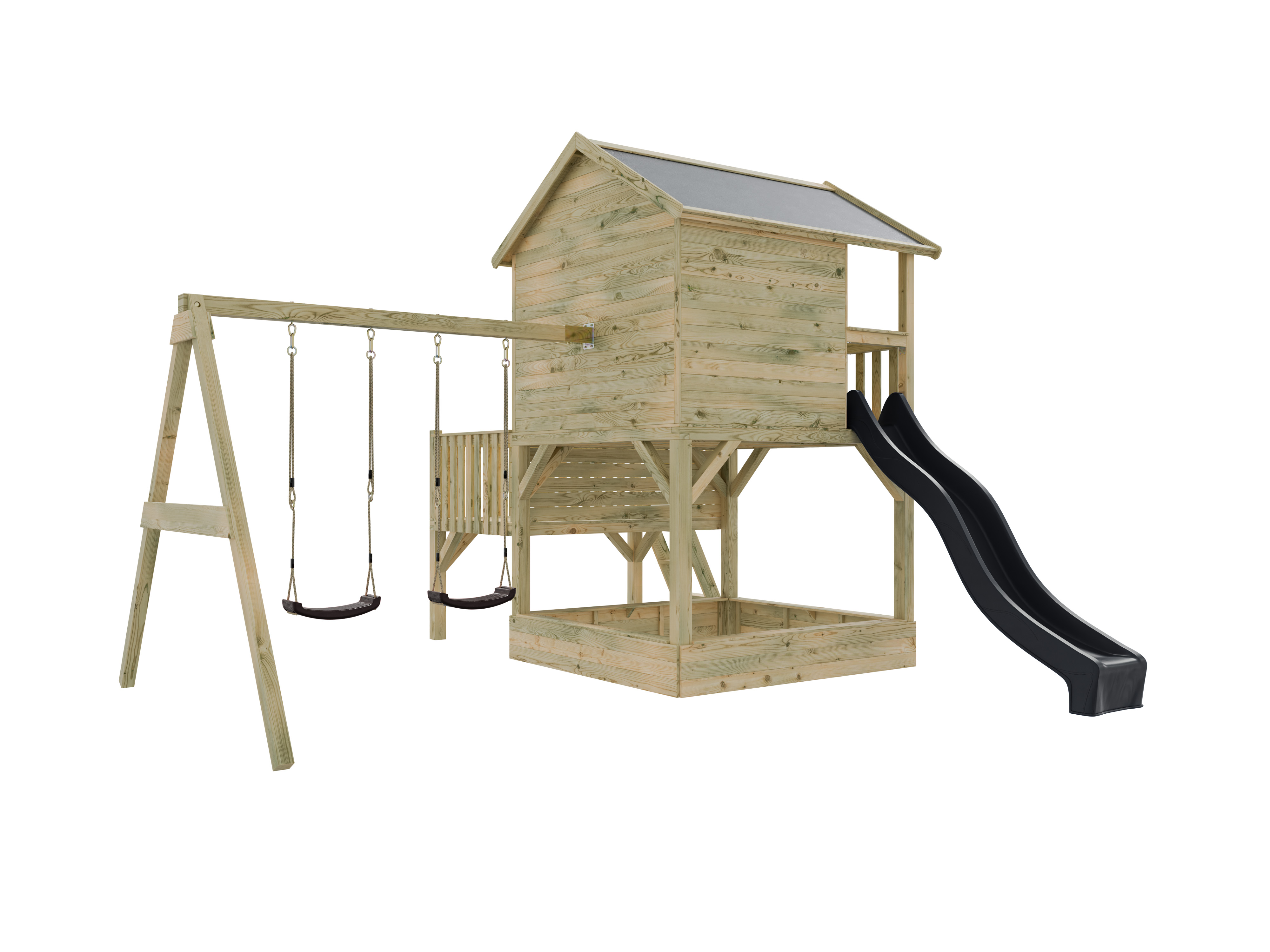 Prestige Garden Stelzenhaus "Big House L mit Sandkasten" kesseldruckimprägniert inkl. Doppelschaukelanbau und Rutsche