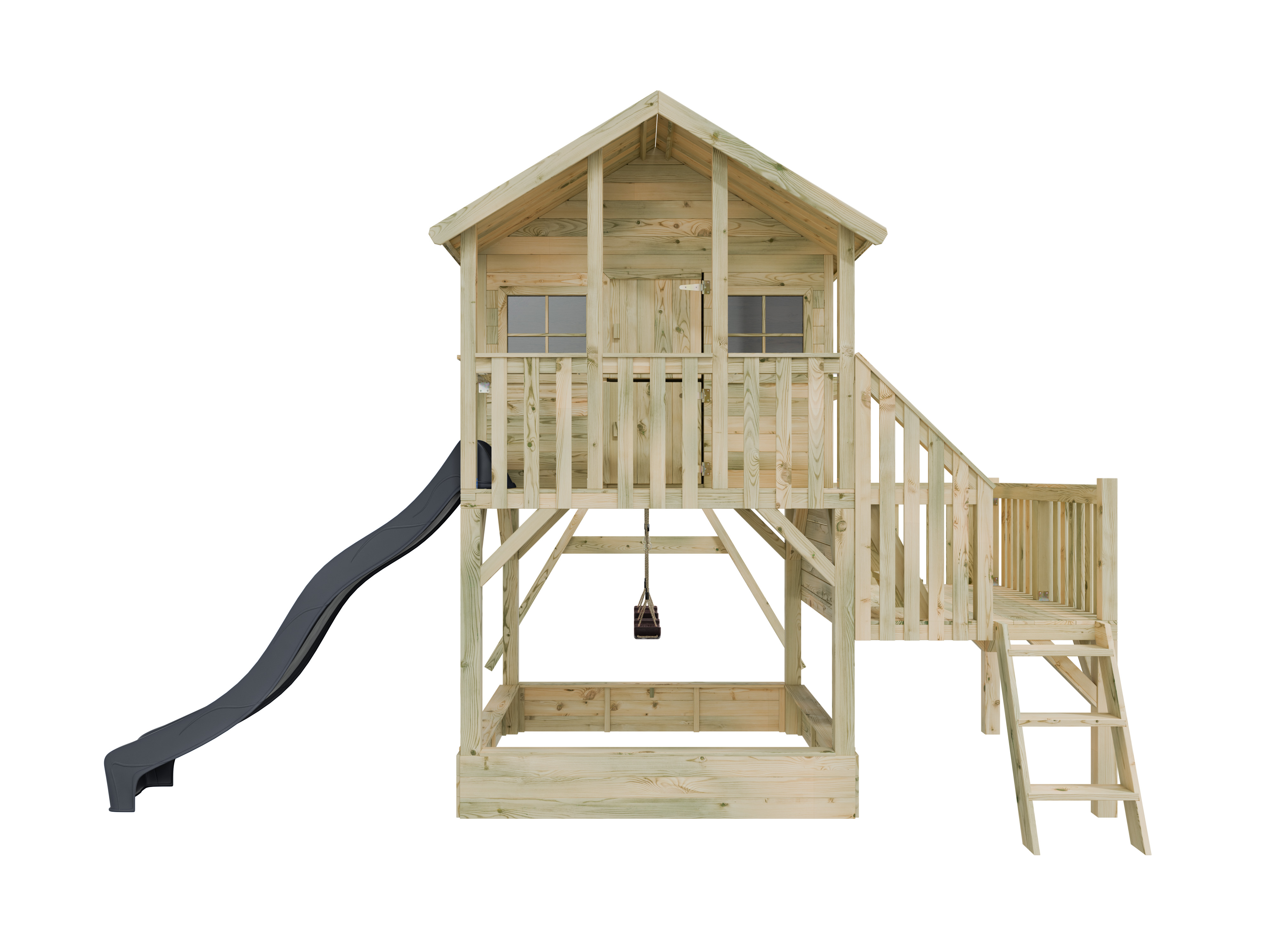 Stelzenhaus Big House L mit Sandkasten KDI inkl. Doppelschaukel und Rutsche grau