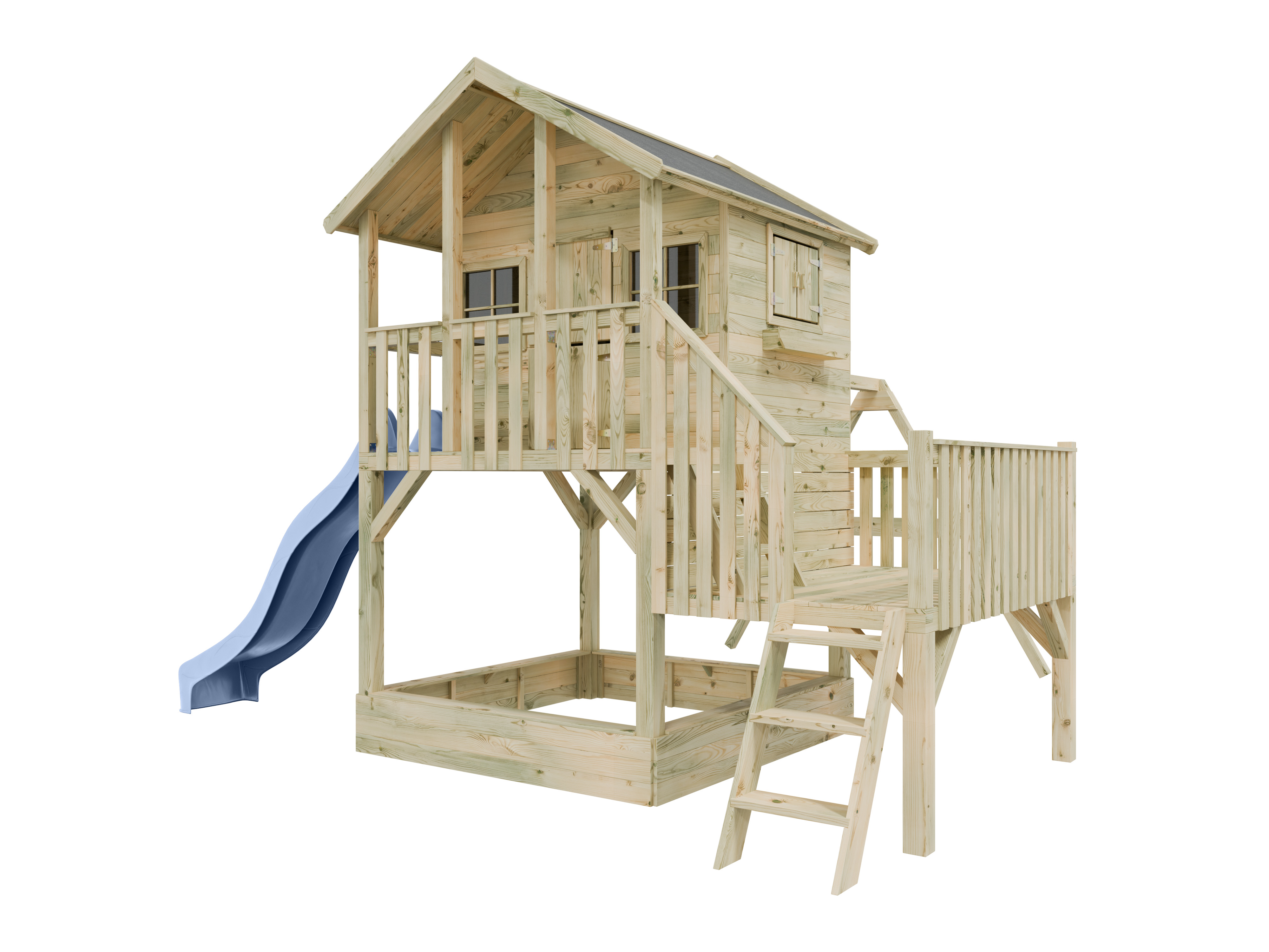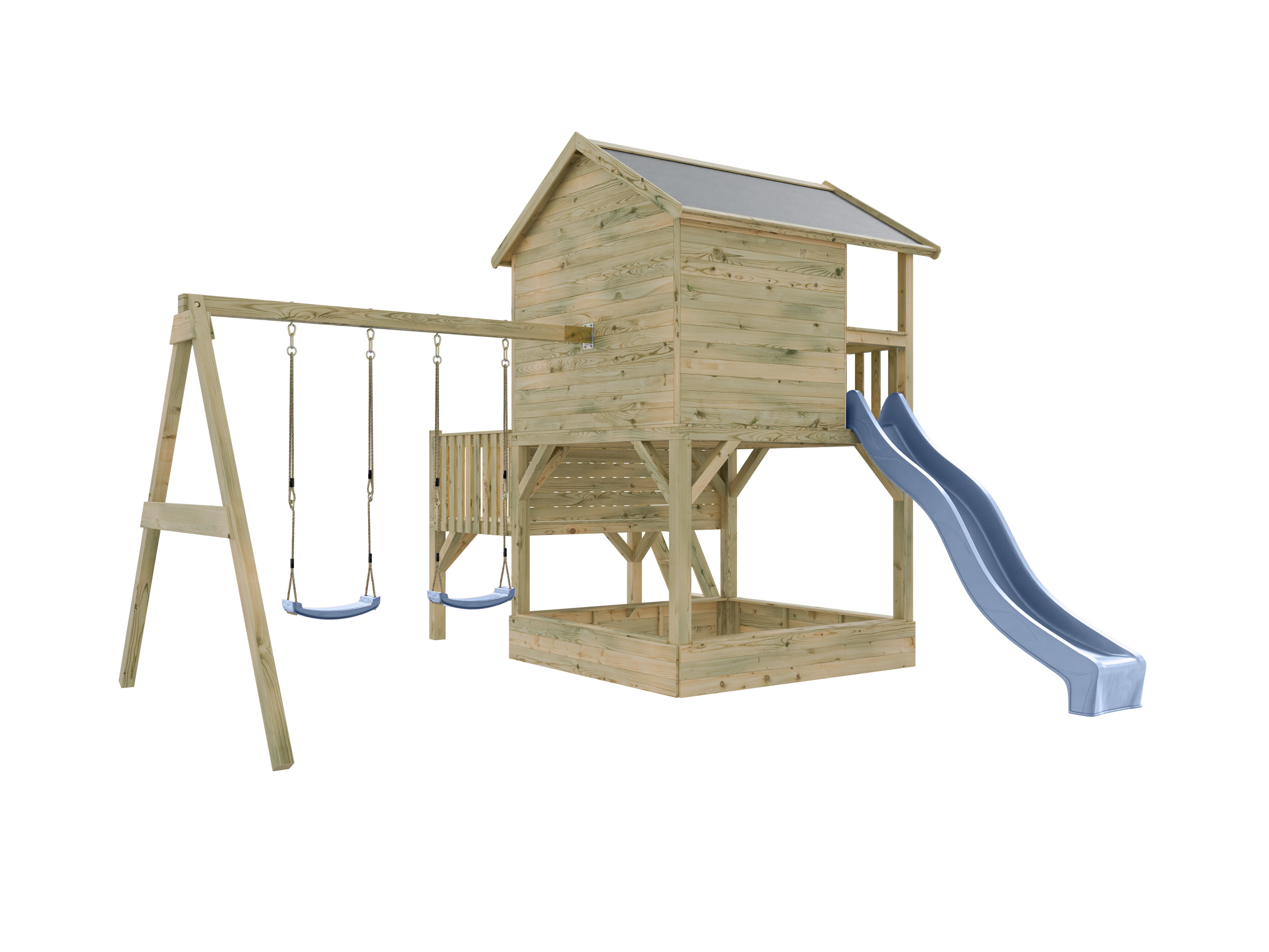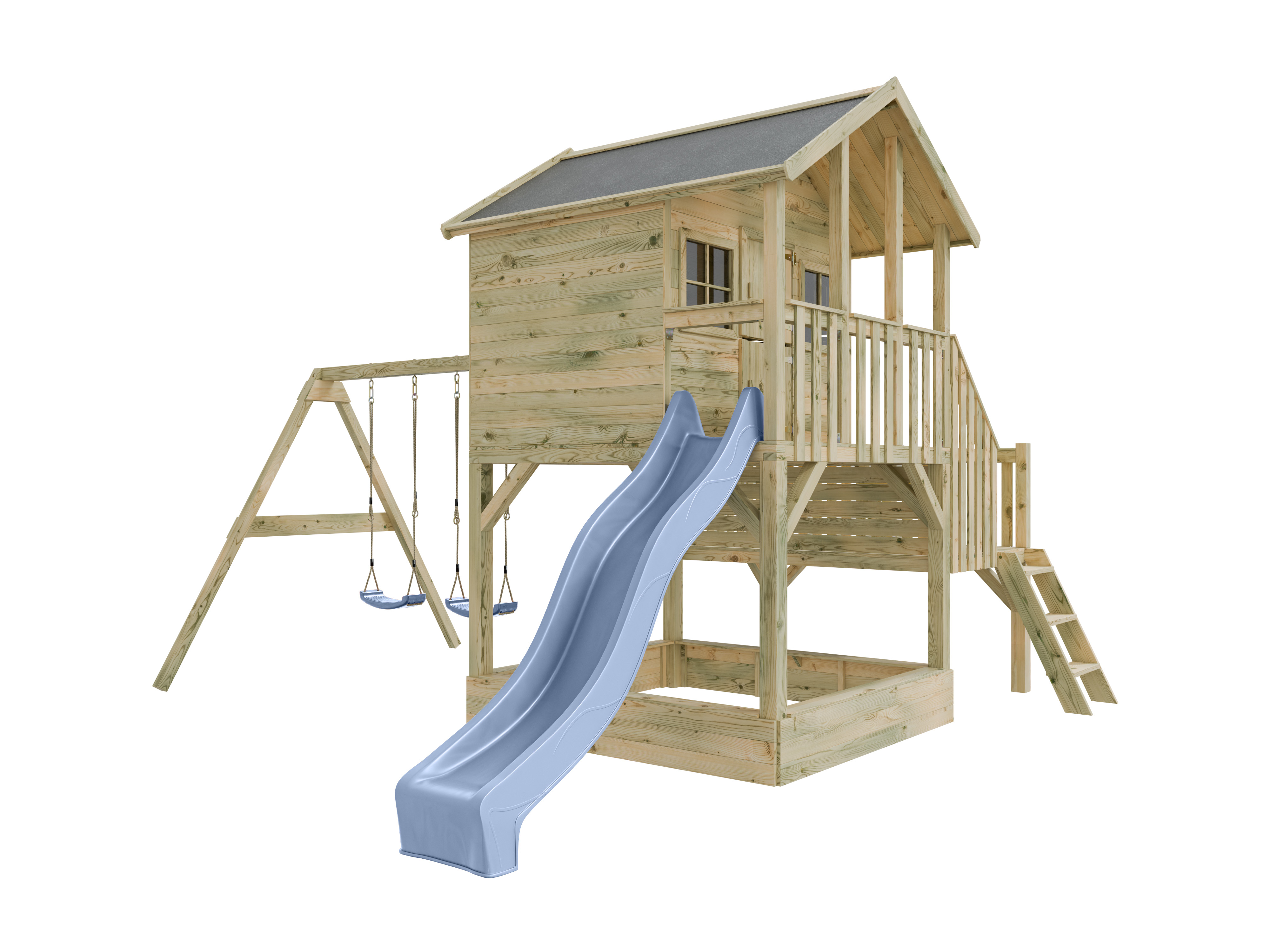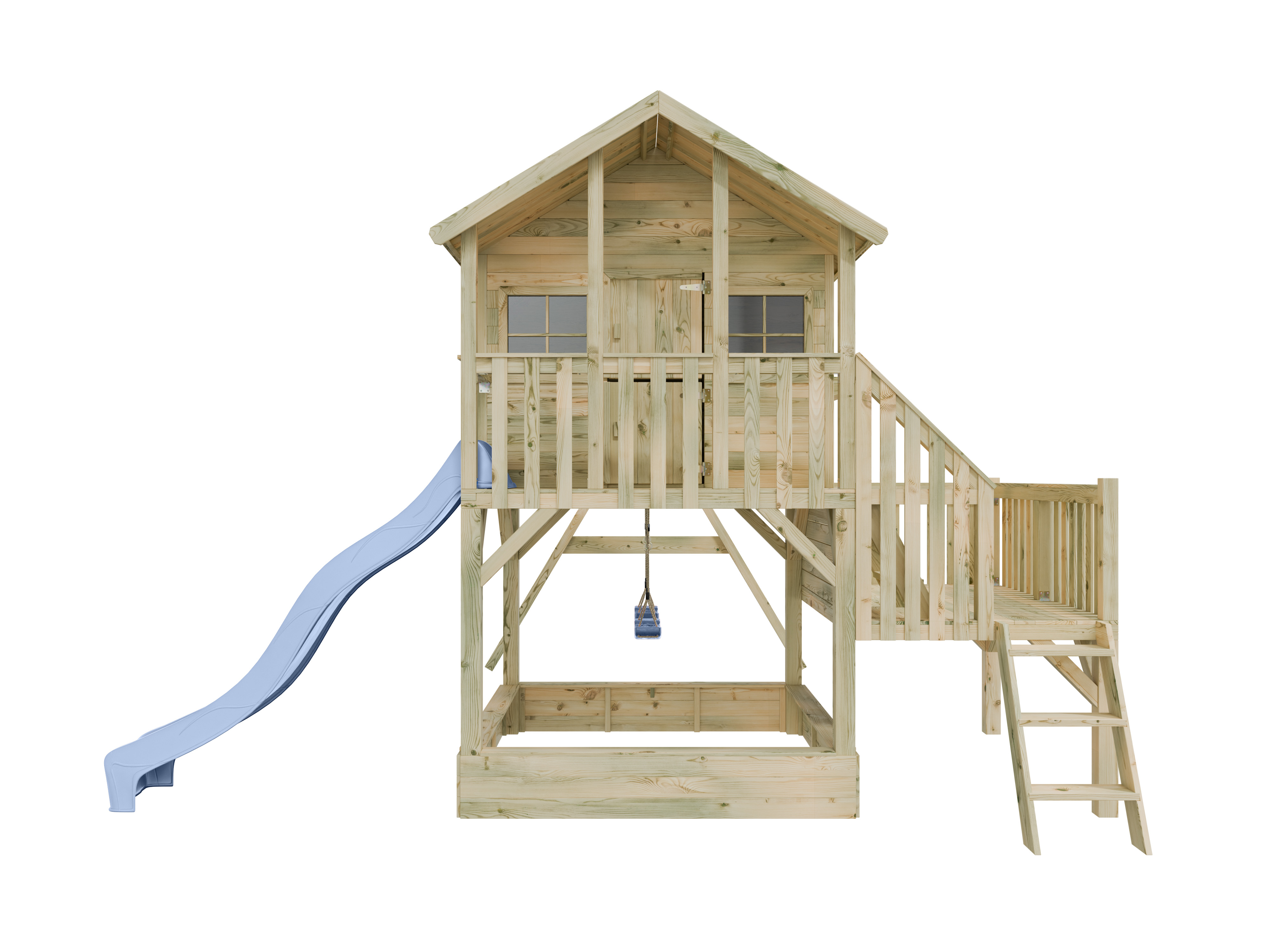 Stelzenhaus Big House L mit Sandkasten KDI inkl. Doppelschaukel und Rutsche pastellblau