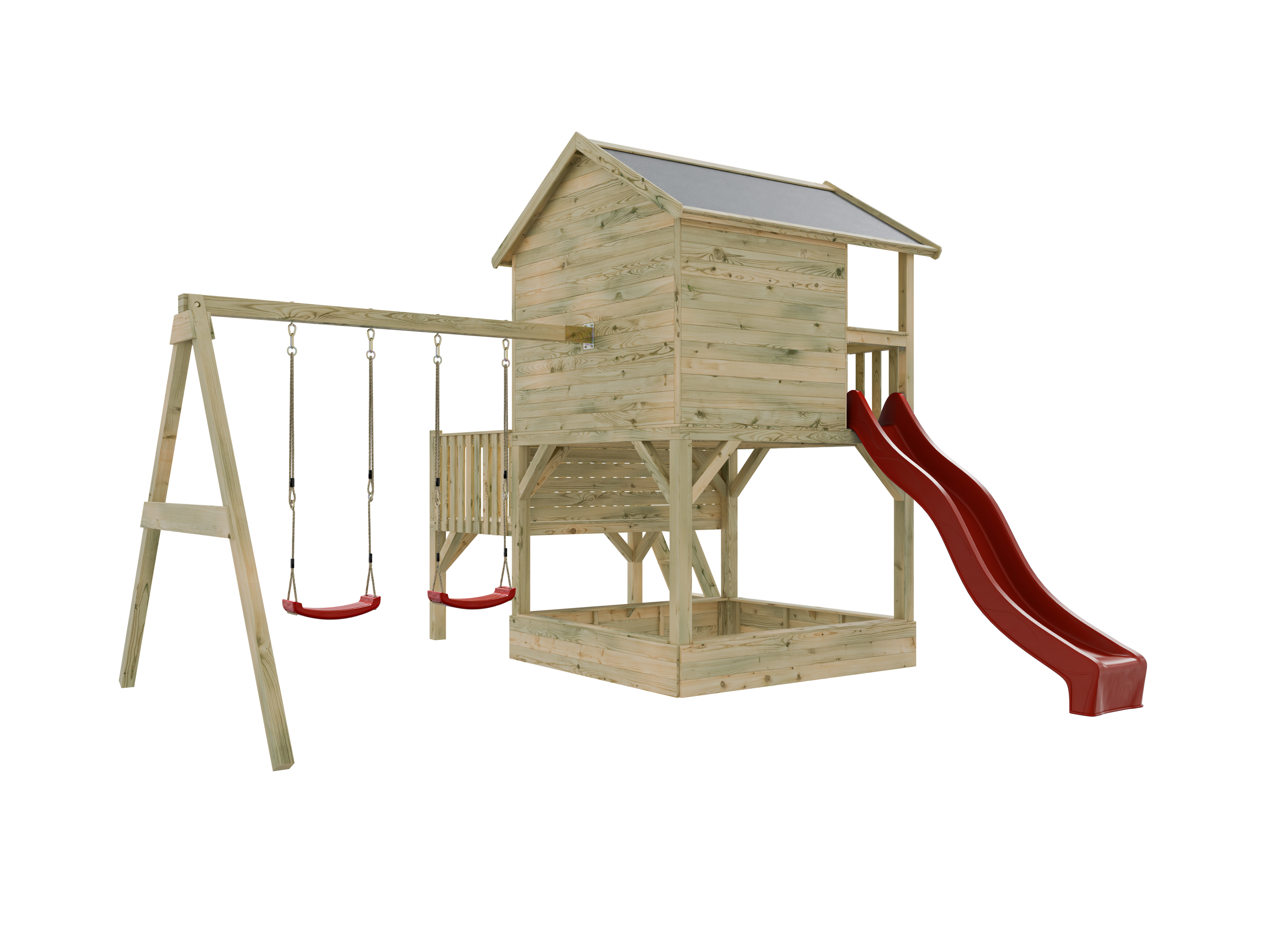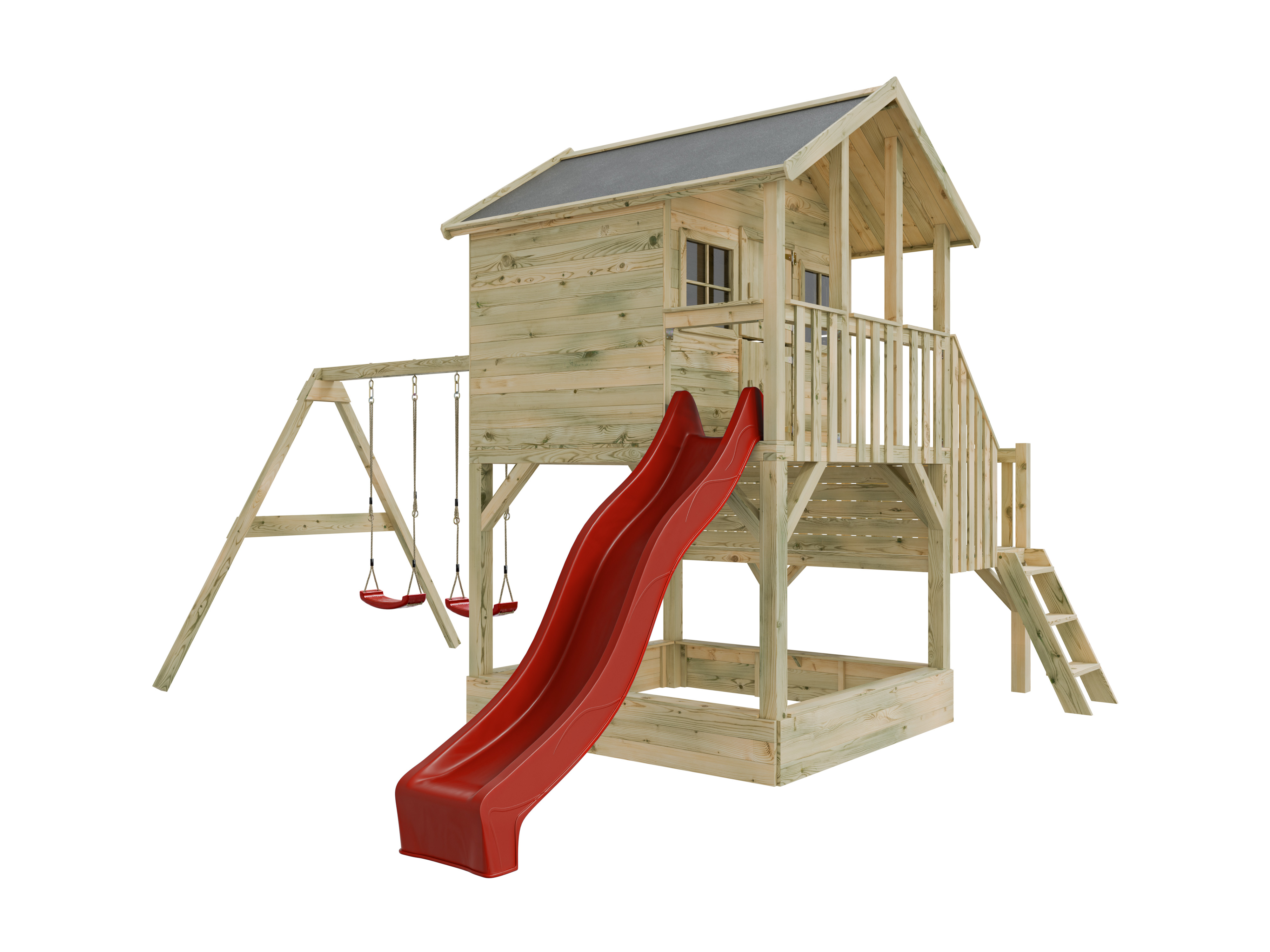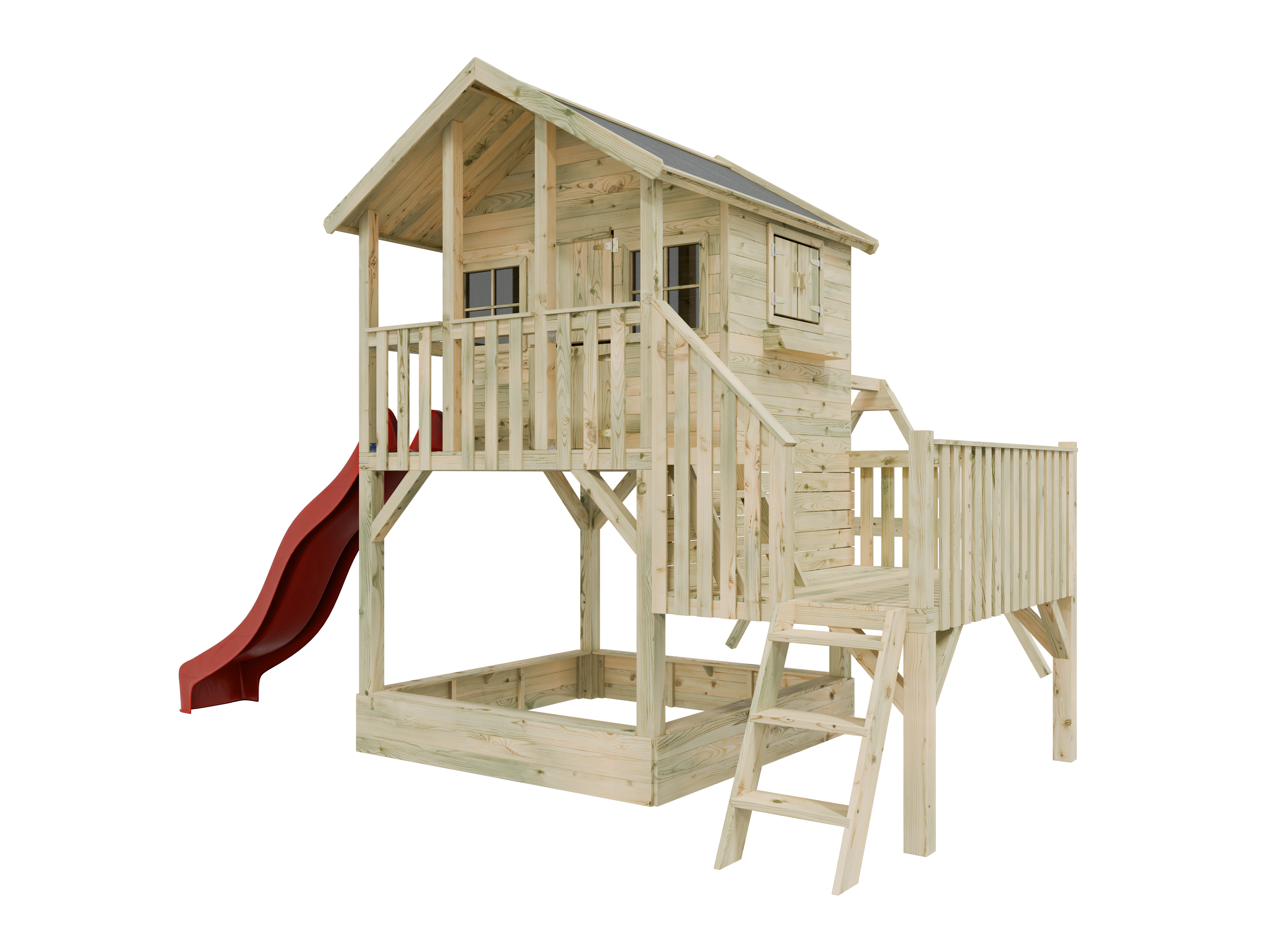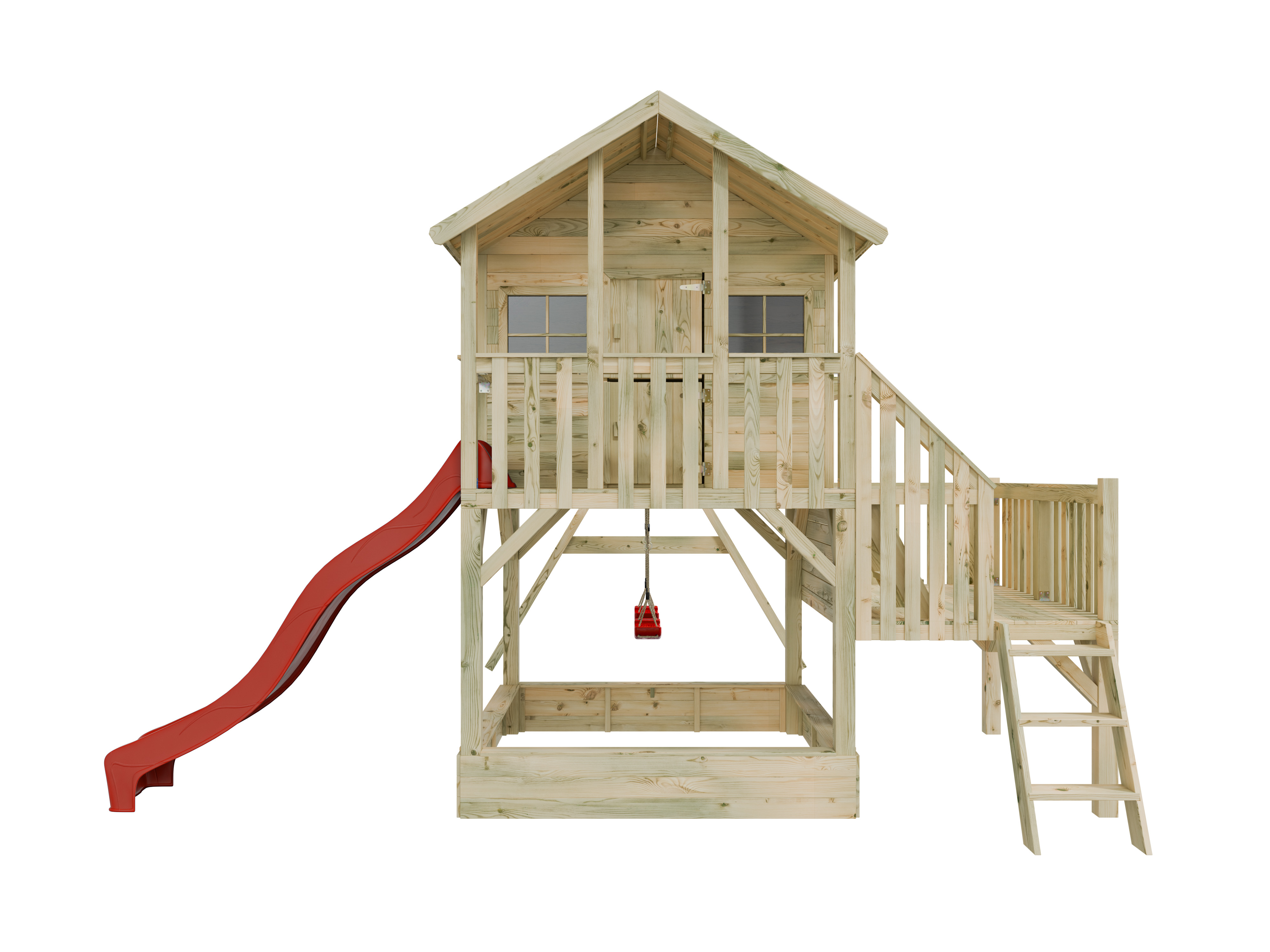 Stelzenhaus Big House L mit Sandkasten KDI inkl. Doppelschaukel und Rutsche rot