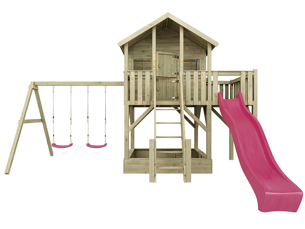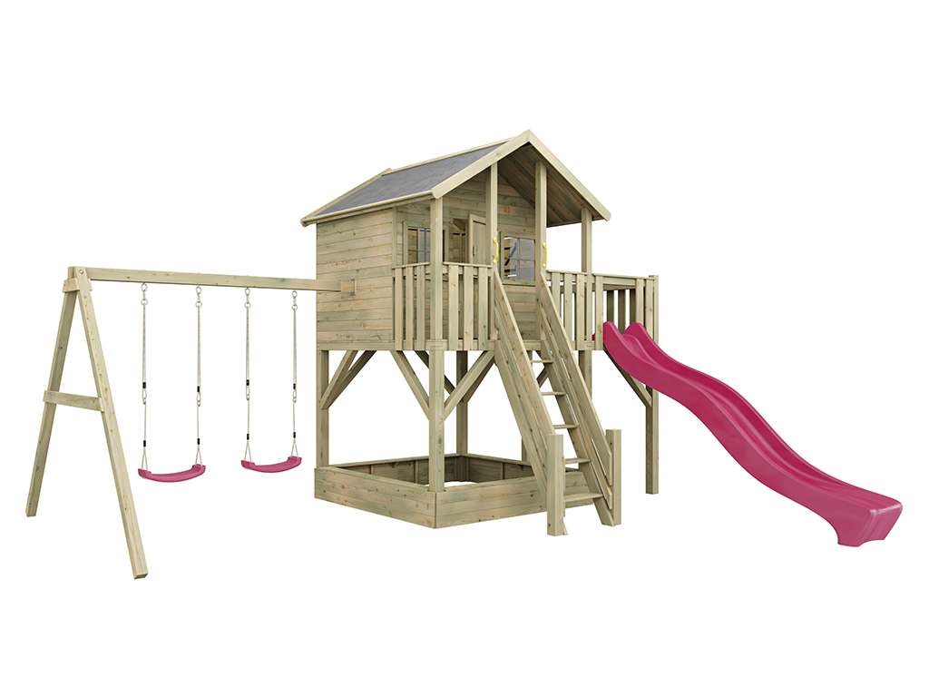 Prestige Garden Stelzenhaus "Big House XL" kesseldruckimprägniert inkl. Doppelschaukel und Rutsche pink