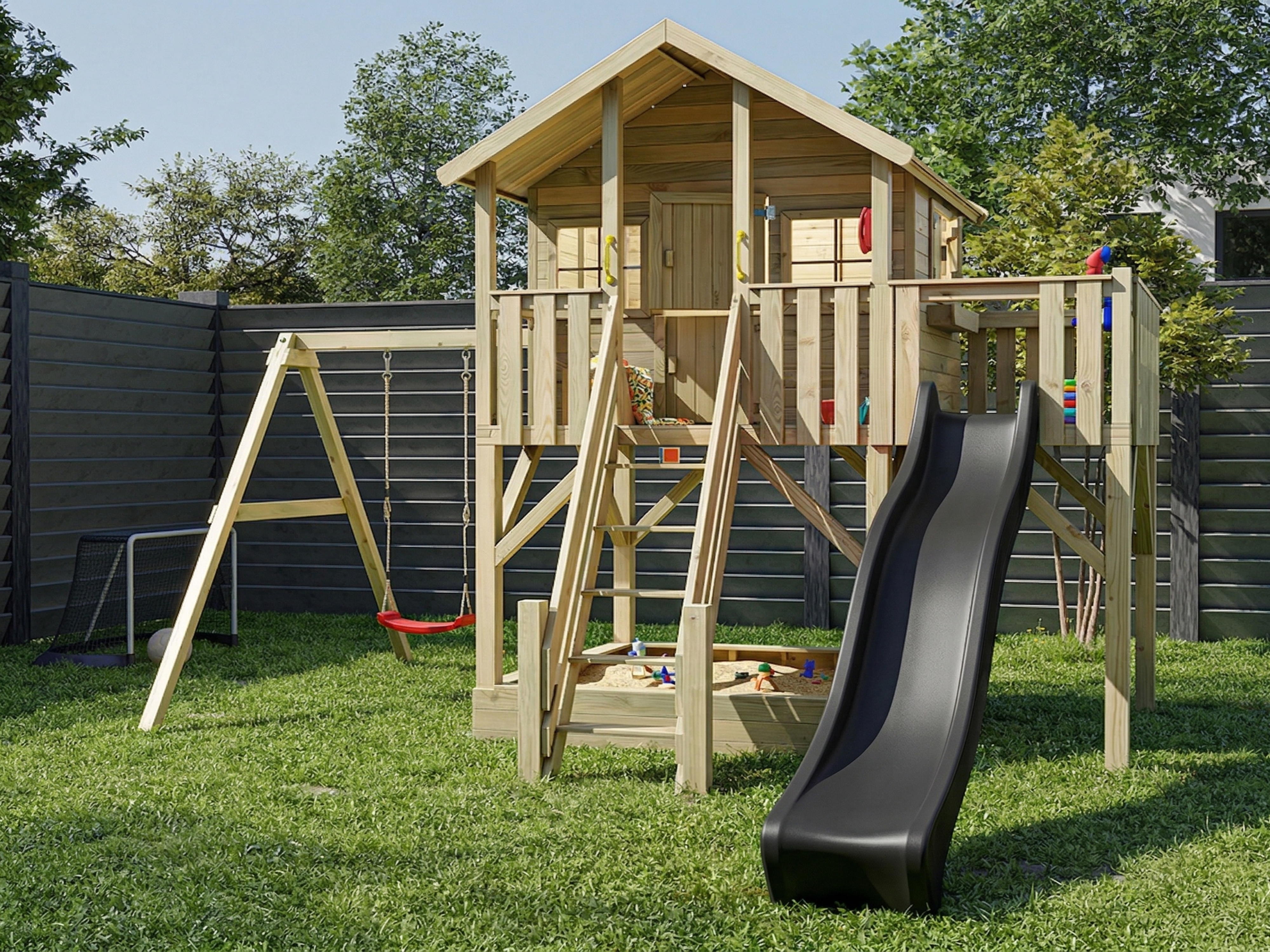 Stelzenhaus Big House XL KDI inkl. Einzelschaukel und Rutsche grau