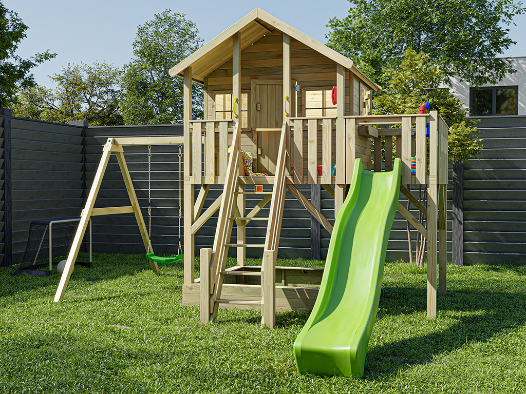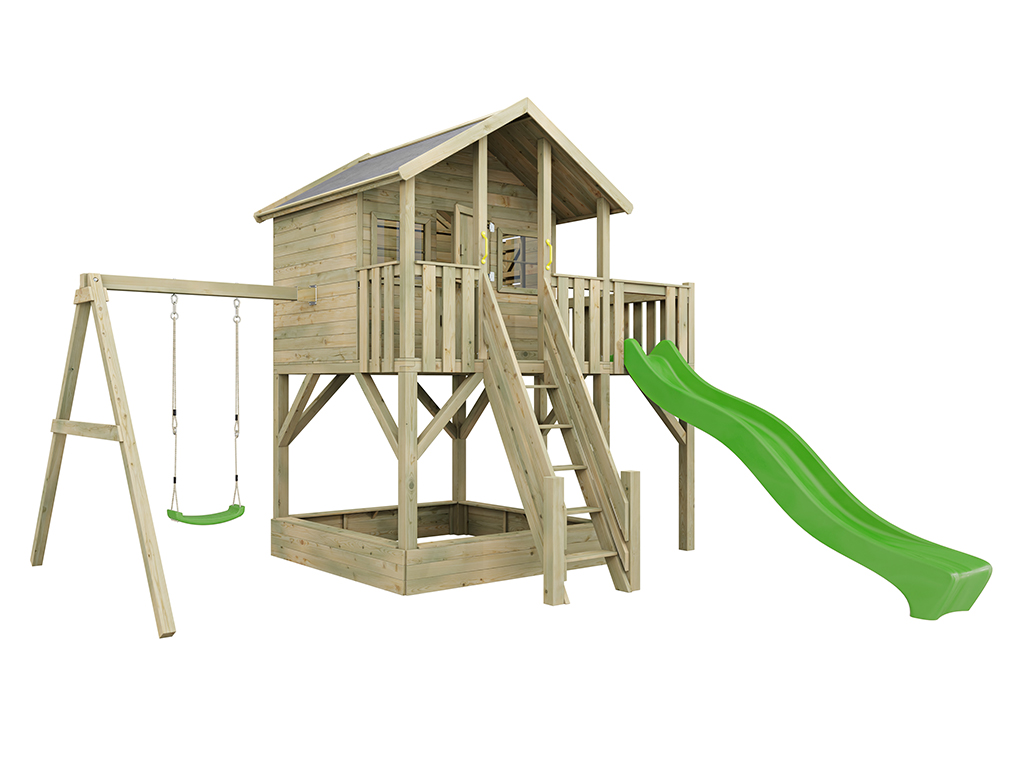 Stelzenhaus Big House XL KDI inkl. Einzelschaukel und Rutsche grün