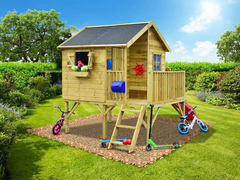 Das Stelzenhaus wird mit Einzeltür und 3 Fenstern geliefert und sorgt für großes Spielvergnügen bei den Kindern.