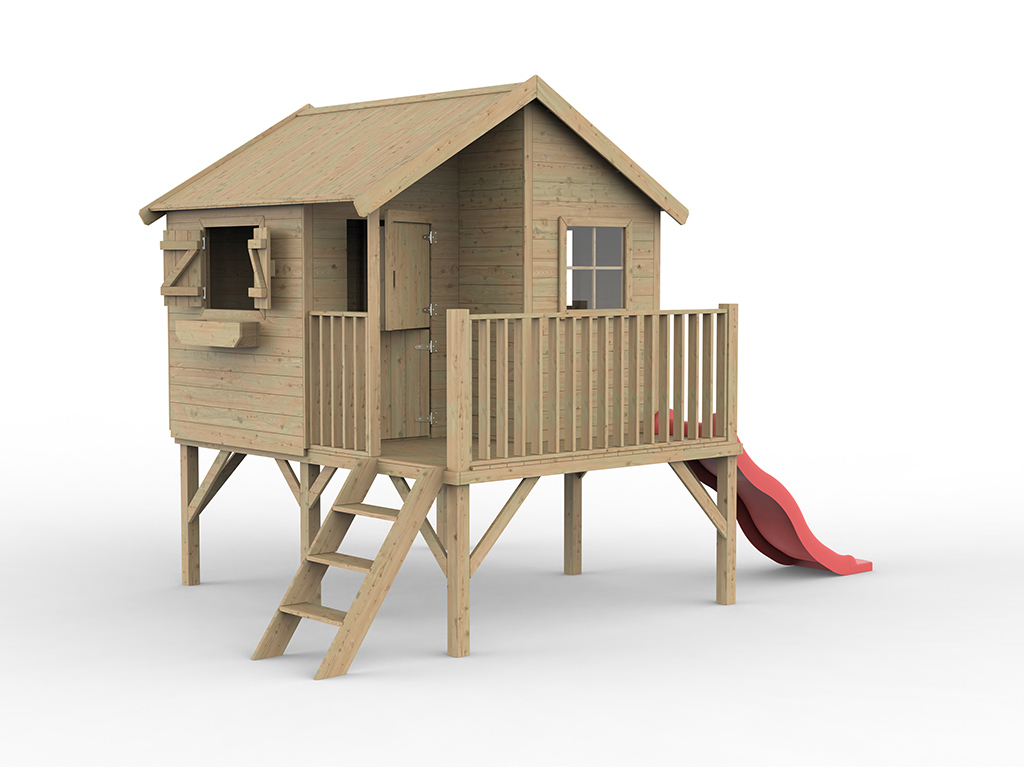 Das Stelzenhaus wird mit Einzeltür und 3 Fenstern geliefert und sorgt für großes Spielvergnügen bei den Kindern.