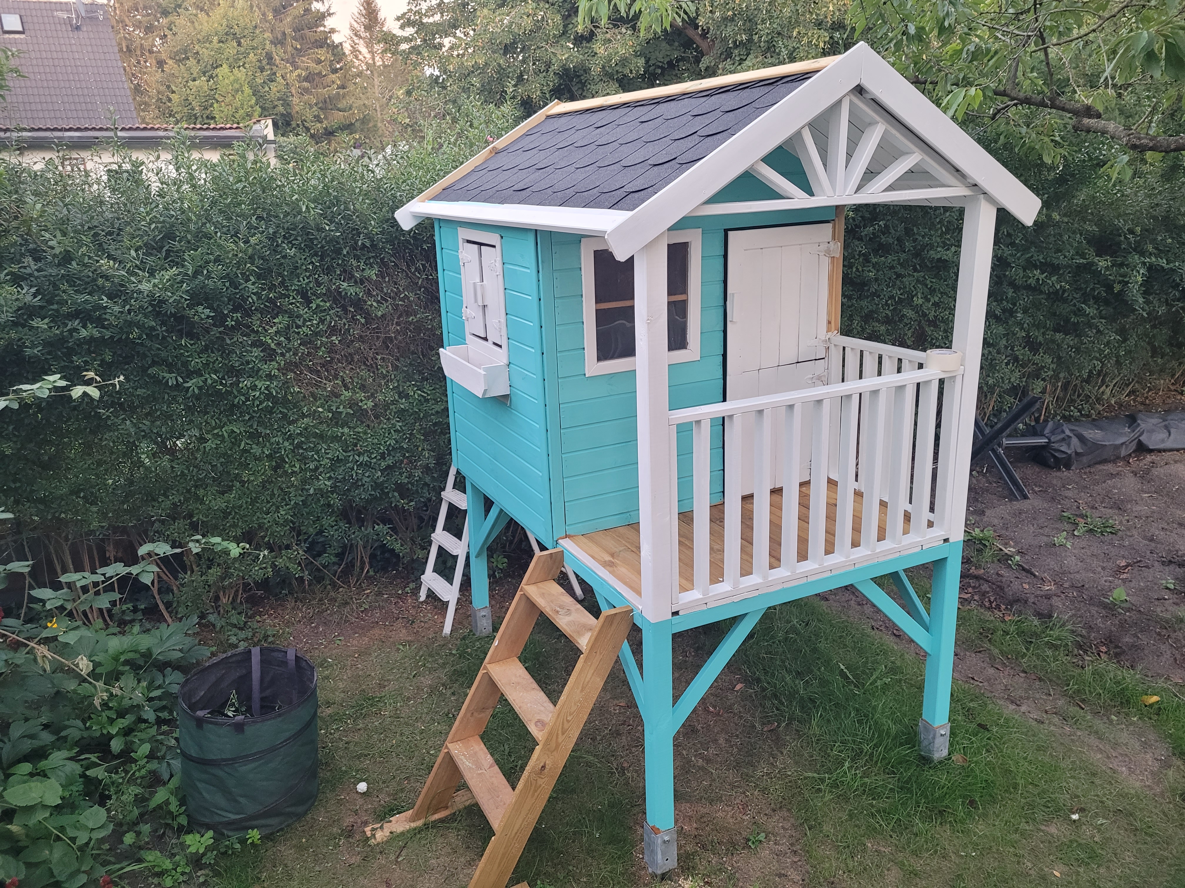Die Lieferung war schneller als erwartet, jedoch wurden wir nicht von der Spedition kontaktiert. Wäre ich nicht zufällig zu Hause gewesen, wäre das schief gelaufen. Qualität ist gut für den Preis. Hier und da haben wir noch nachgeschliffen und auch das ganze Haus mit wetterfarbe bepinselt. Wir haben unsere alte Rutsche an ein Ende angebaut und haben das Haus auf alte holzpfosten höher gesetzt. So hat nun auch die matschküche ihren Platz gefunden und die Kids können problemlos drunter stehen. Wir haben auch unsere alte Holztreppe vom alten spielturm verwendet. Sieht echt toll aus und unsere Kleine ist echt happy