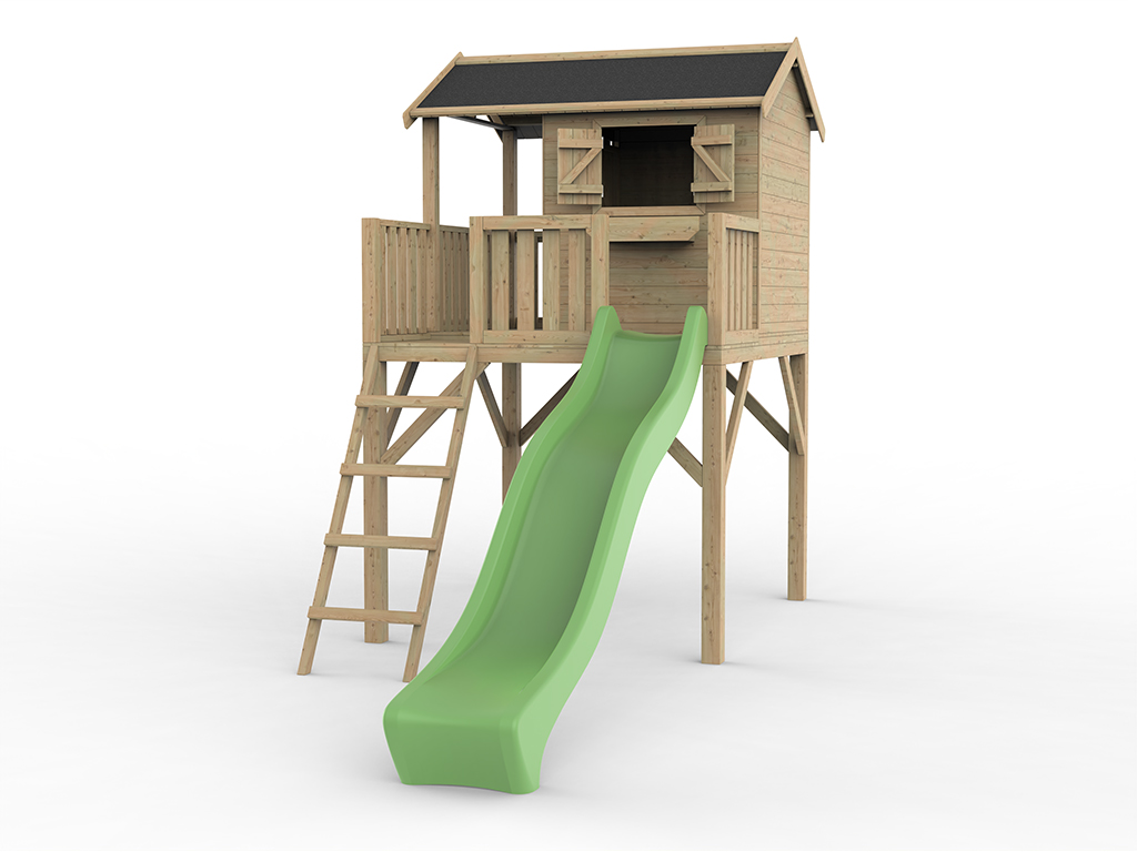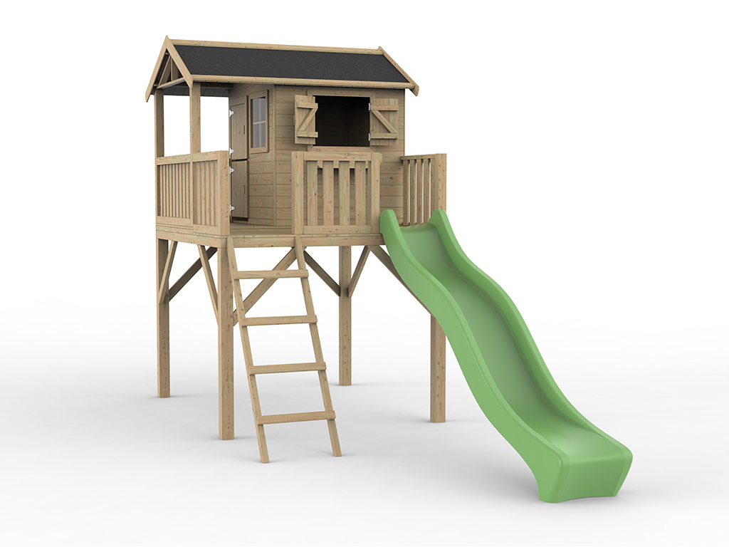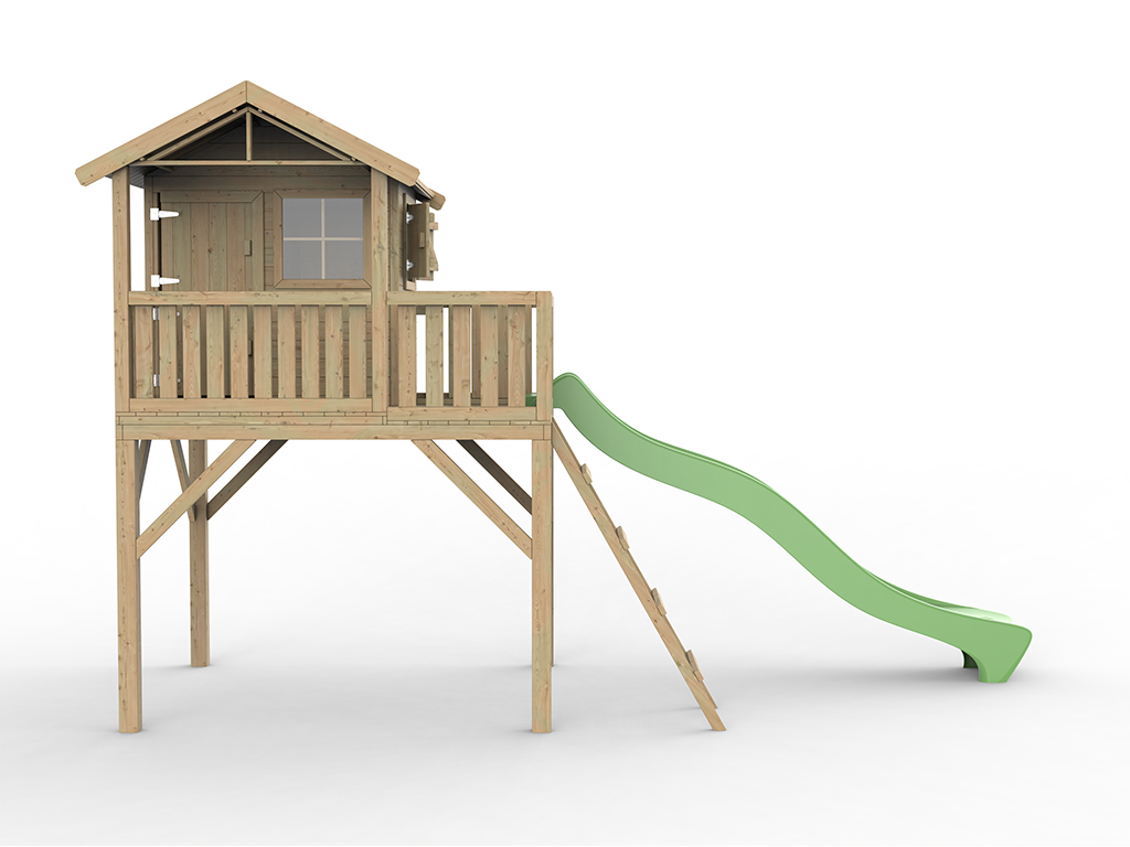 Das Stelzenhaus wird mit Veranda und Balkon wird zum Blickfang in deinem Garten und sorgt für großes Spielvergnügen bei den Kindern.