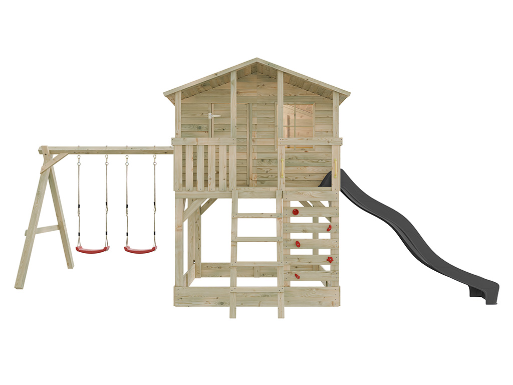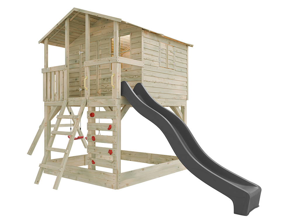 Stelzenhaus Henry kesseldruckimprägniert inkl. Doppelschaukel und Rutsche grau
