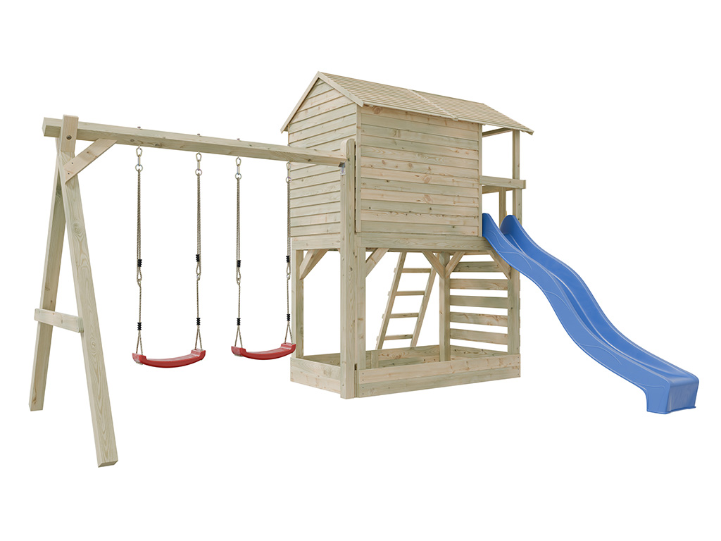 Stelzenhaus Luis kesseldruckimprägniert inkl. Doppelschaukel und Rutsche blau
