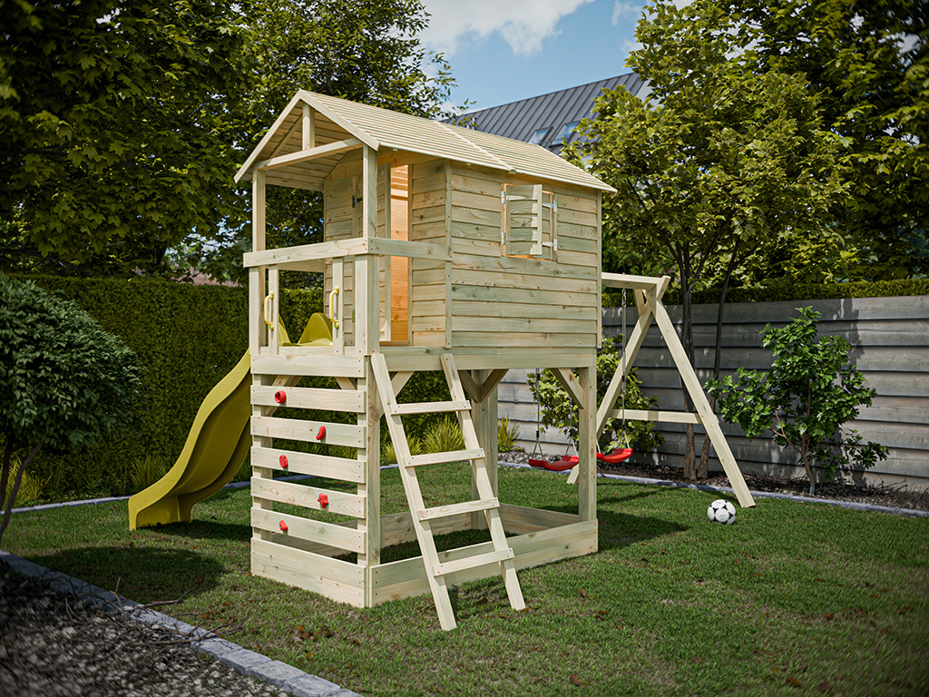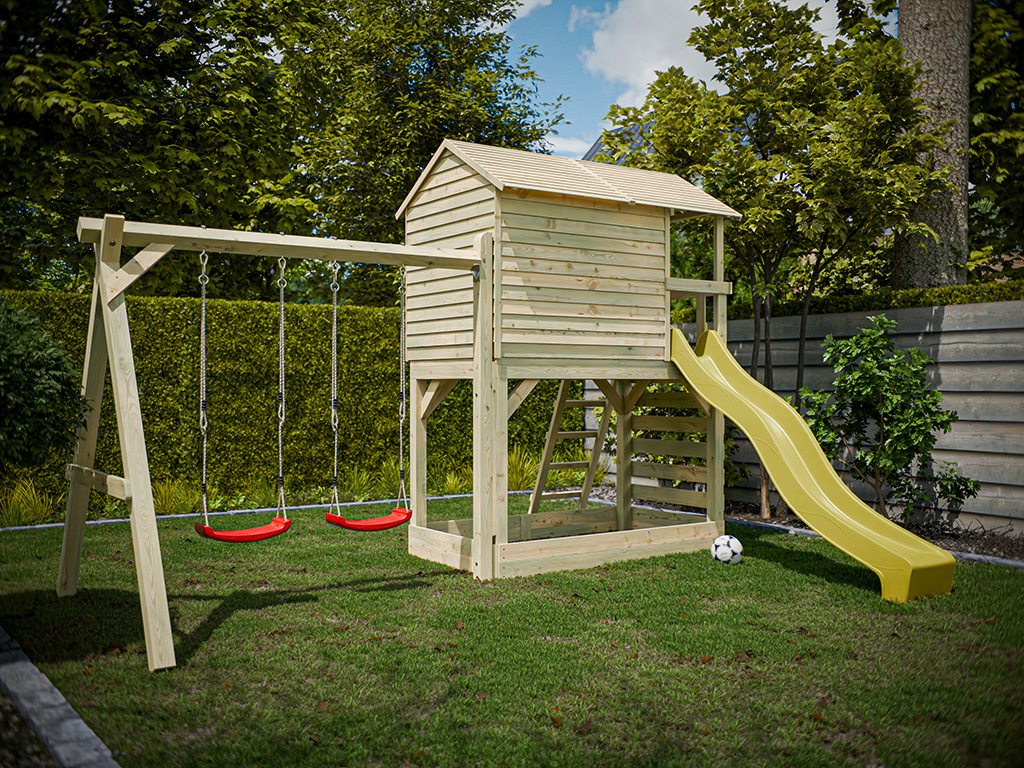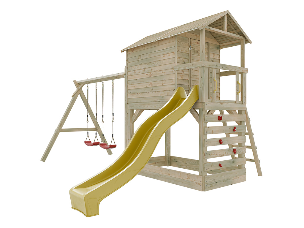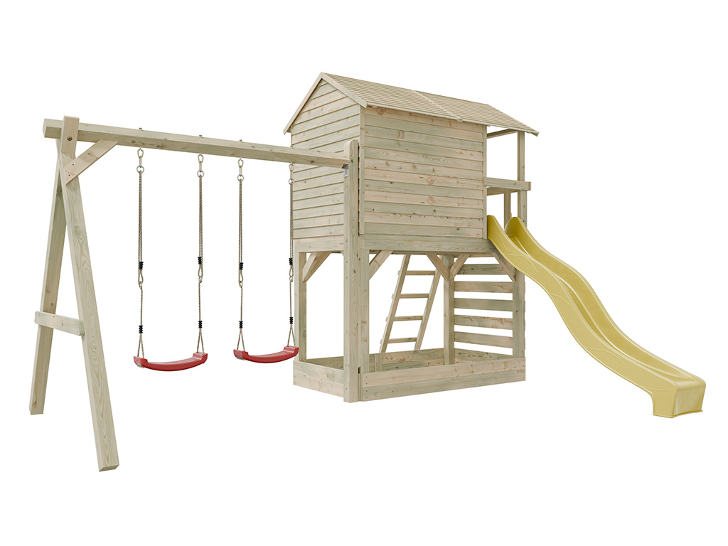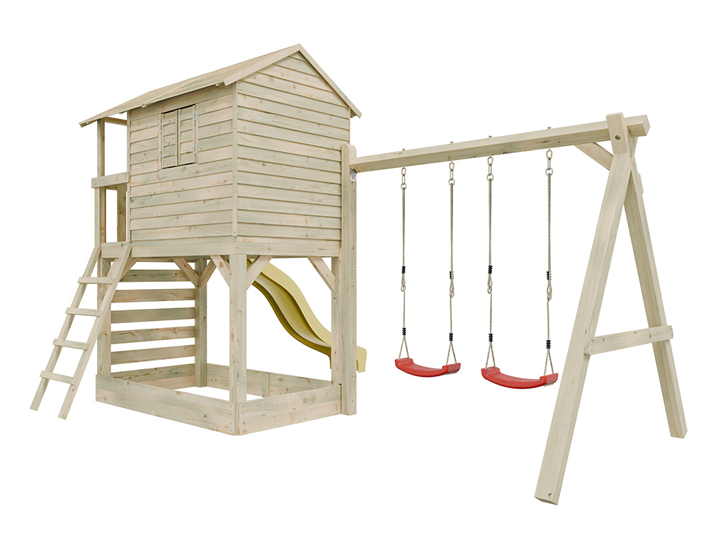 Stelzenhaus Luis kesseldruckimprägniert inkl. Doppelschaukel und Rutsche gelb