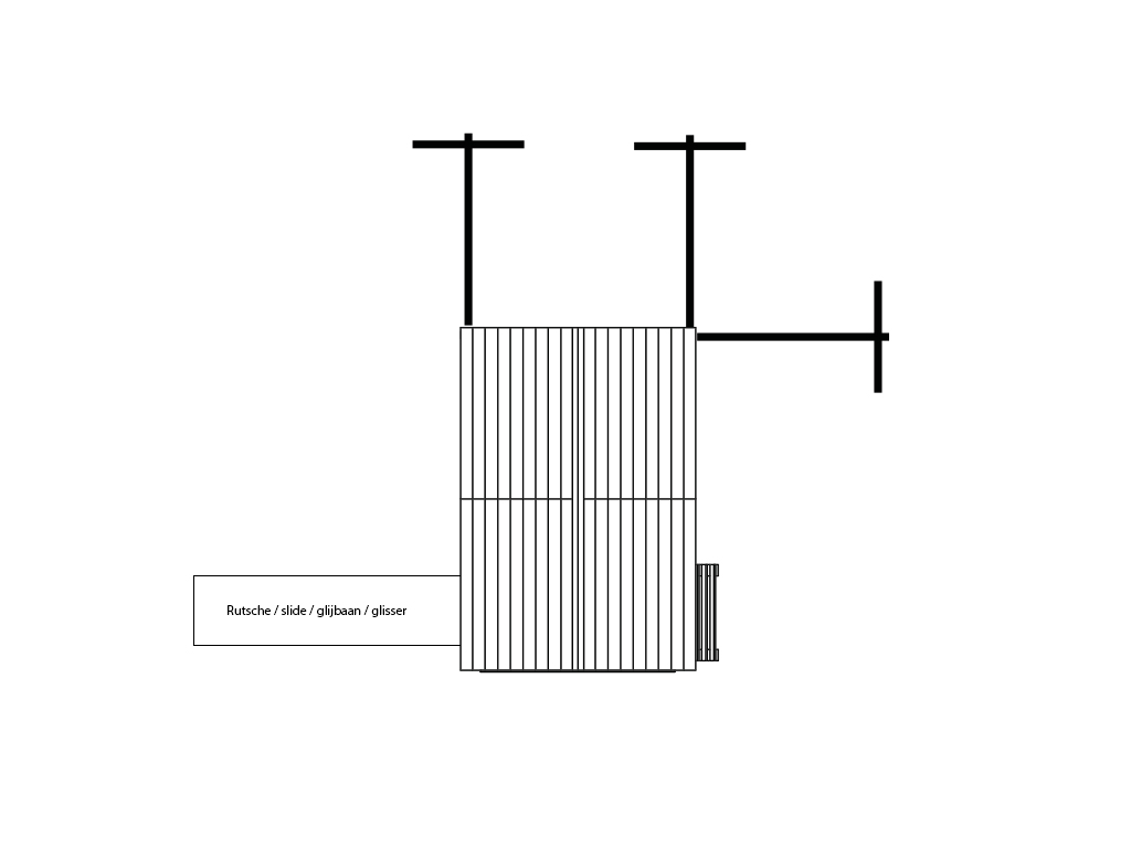 | Außenmaß: | B x T : 150 x 216 cm (Stelzenhaus) + Schaukelanbau: B x T: 240 x 190 cm |