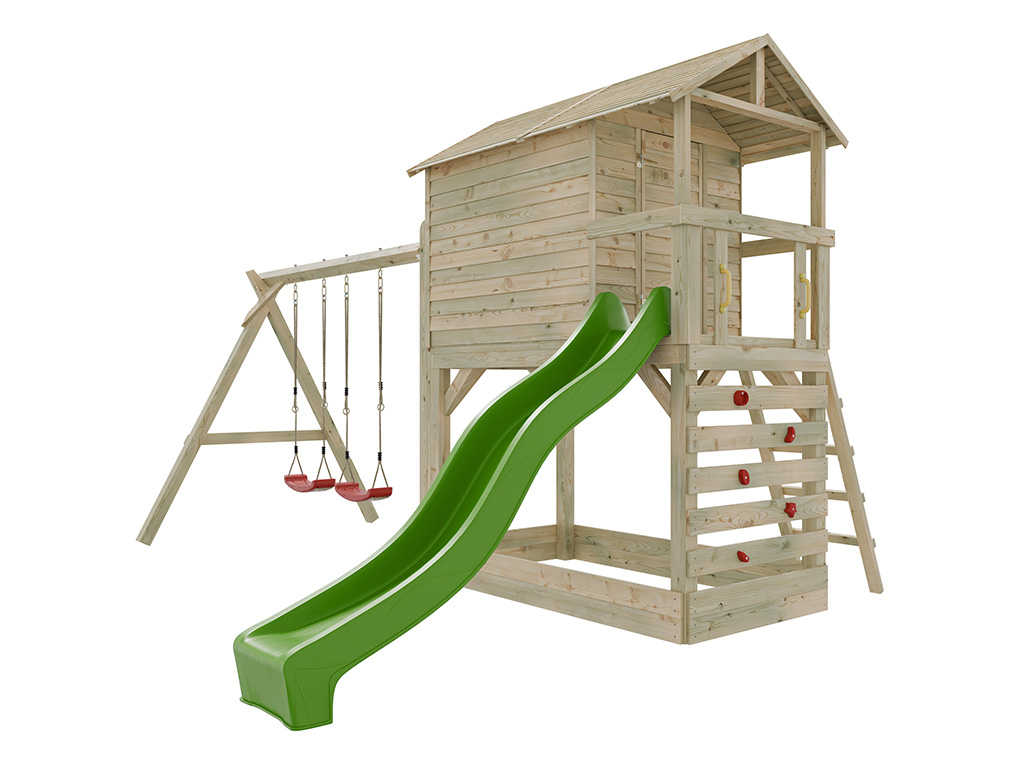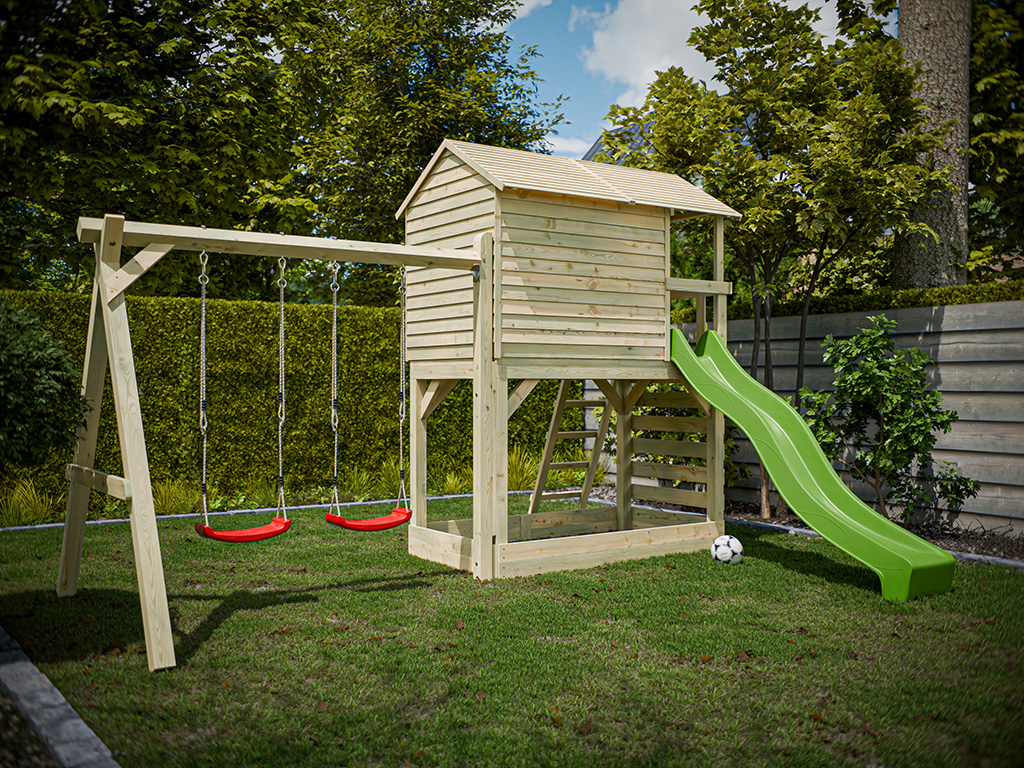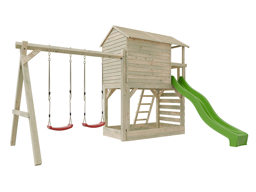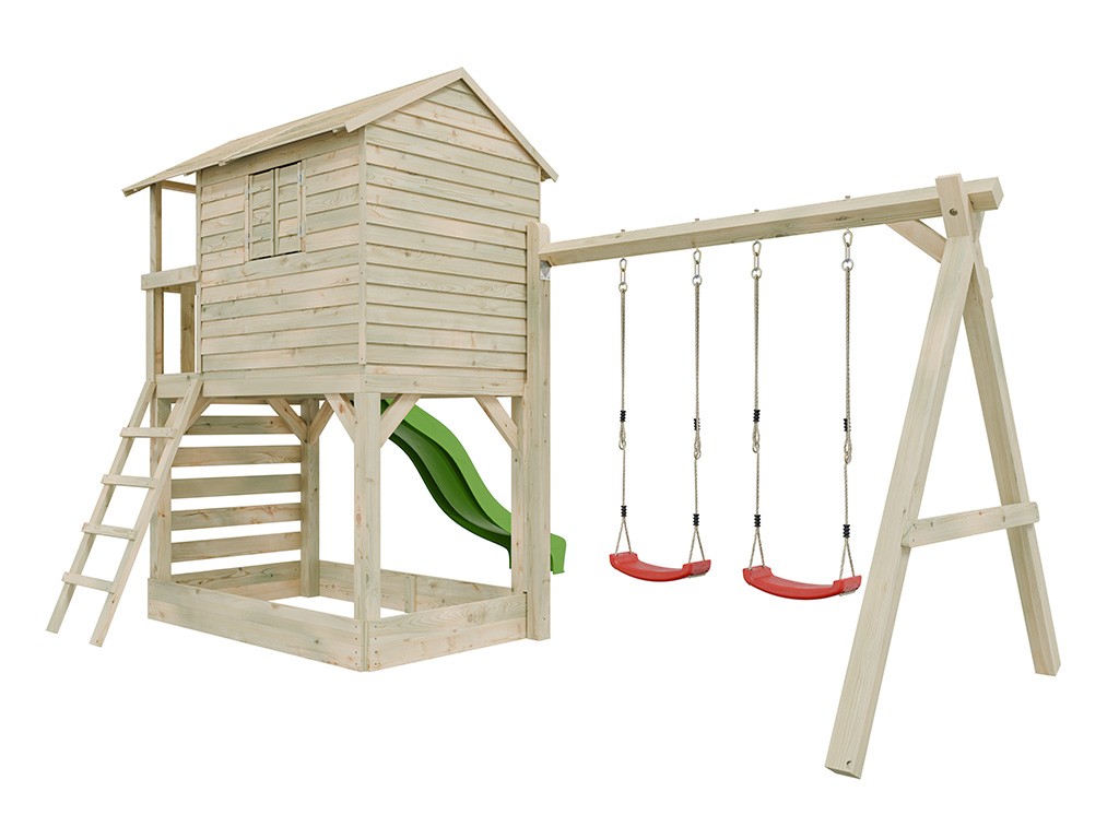 Stelzenhaus Luis kesseldruckimprägniert inkl. Doppelschaukel und Rutsche grün