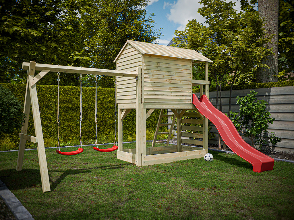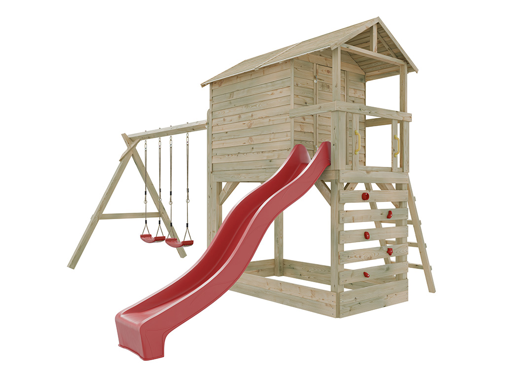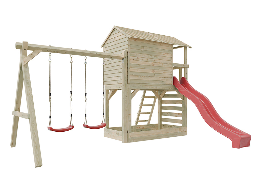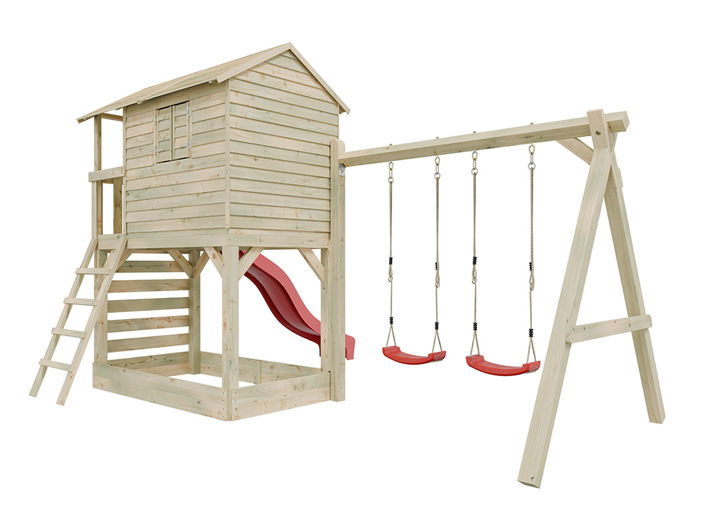 Stelzenhaus Luis kesseldruckimprägniert inkl. Doppelschaukel und Rutsche rot