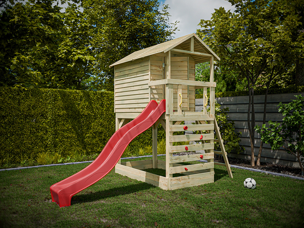 Stelzenhaus Luis kesseldruckimprägniert inkl. Rutsche rot