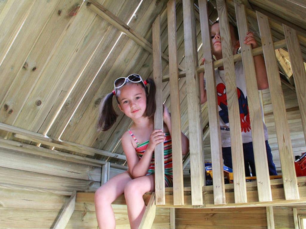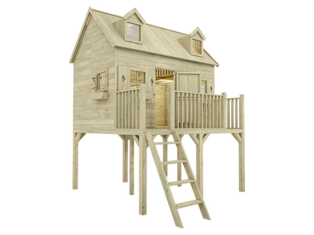 Das Stelzenhaus mit 120 cm Podest und Schlafboden sorgt für großes Spielvergnügen bei den Kindern.