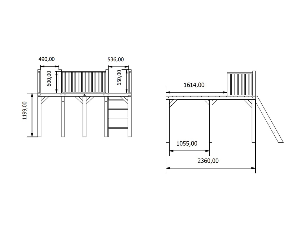 | Pfostenstärke Spielturm (cm): | 9 x 9 + 6,8 x 6,8 cm |