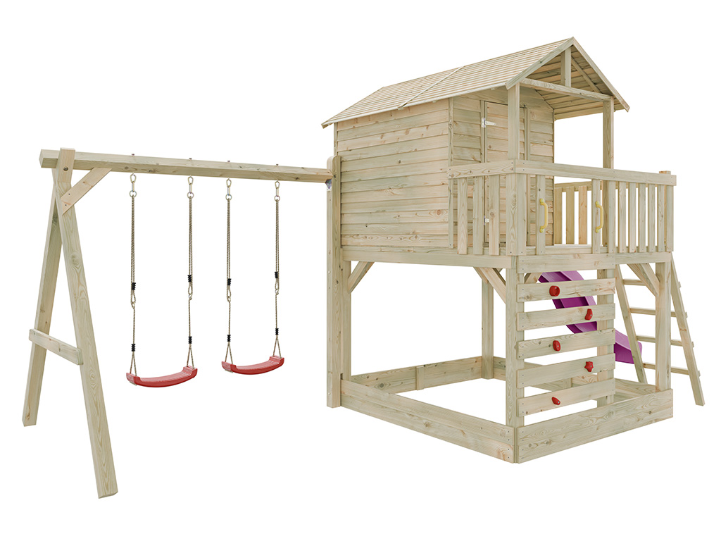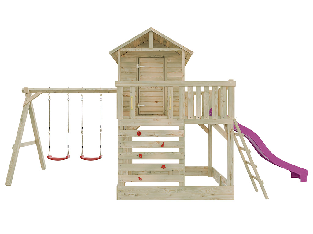 Stelzenhaus Noah kesseldruckimprägniert inkl. Doppelschaukel und Rutsche pink