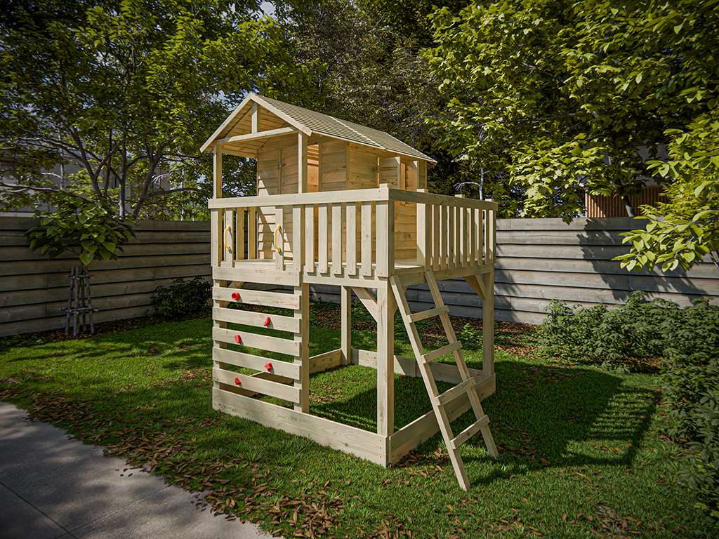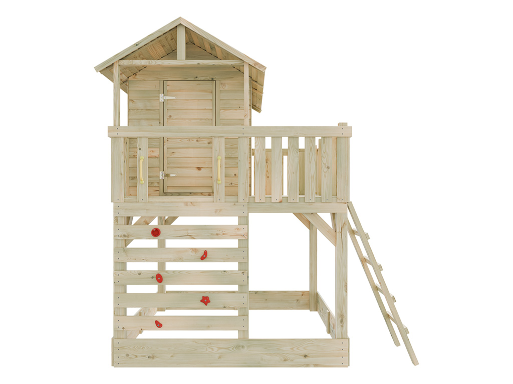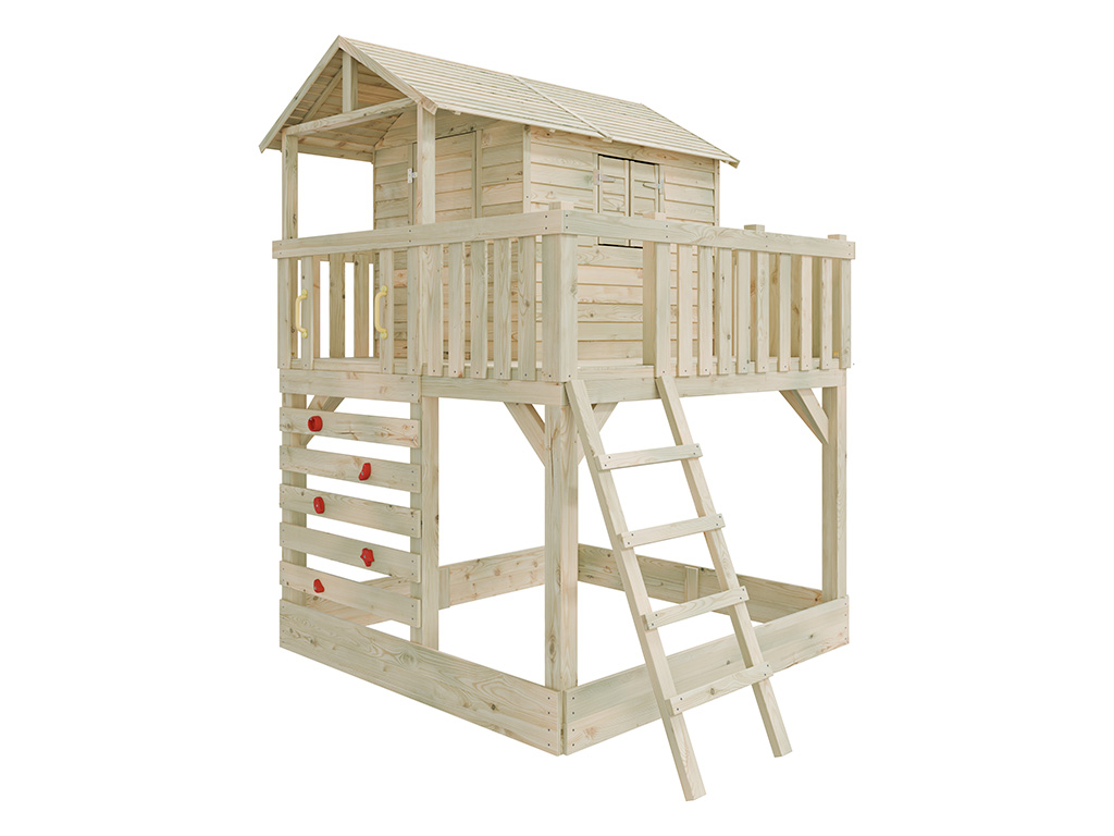 Im Lieferumfang ist eine schräge Leiter für einen sicheren Aufstieg enthalten. Für zusätzlichen Spielspaß ist das Stelzenhaus mit einer Kletterwand und 5 roten Klettersteinen ausgestattet. - Einfacher Aufbau