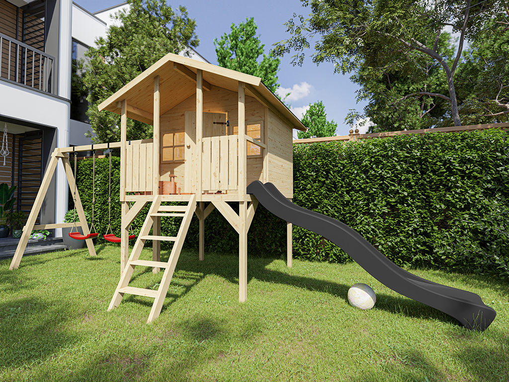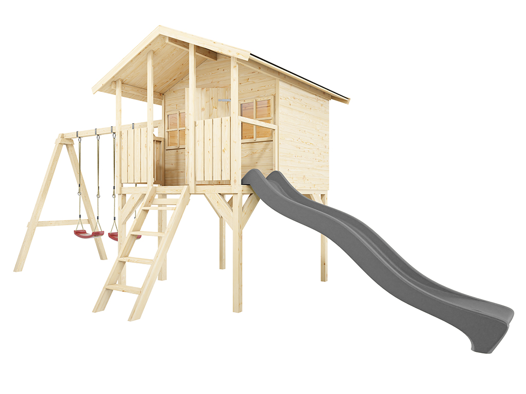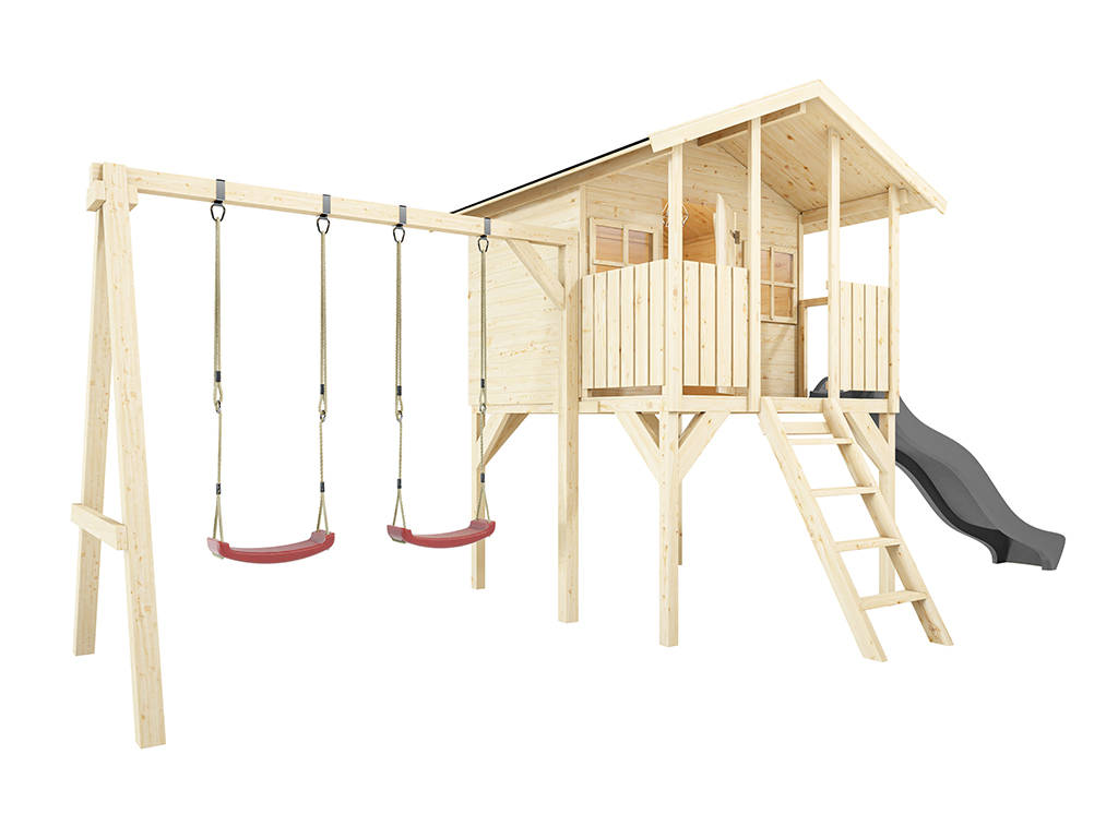 Stelzenhaus Toby inkl. Doppelschaukel und Rutsche grau