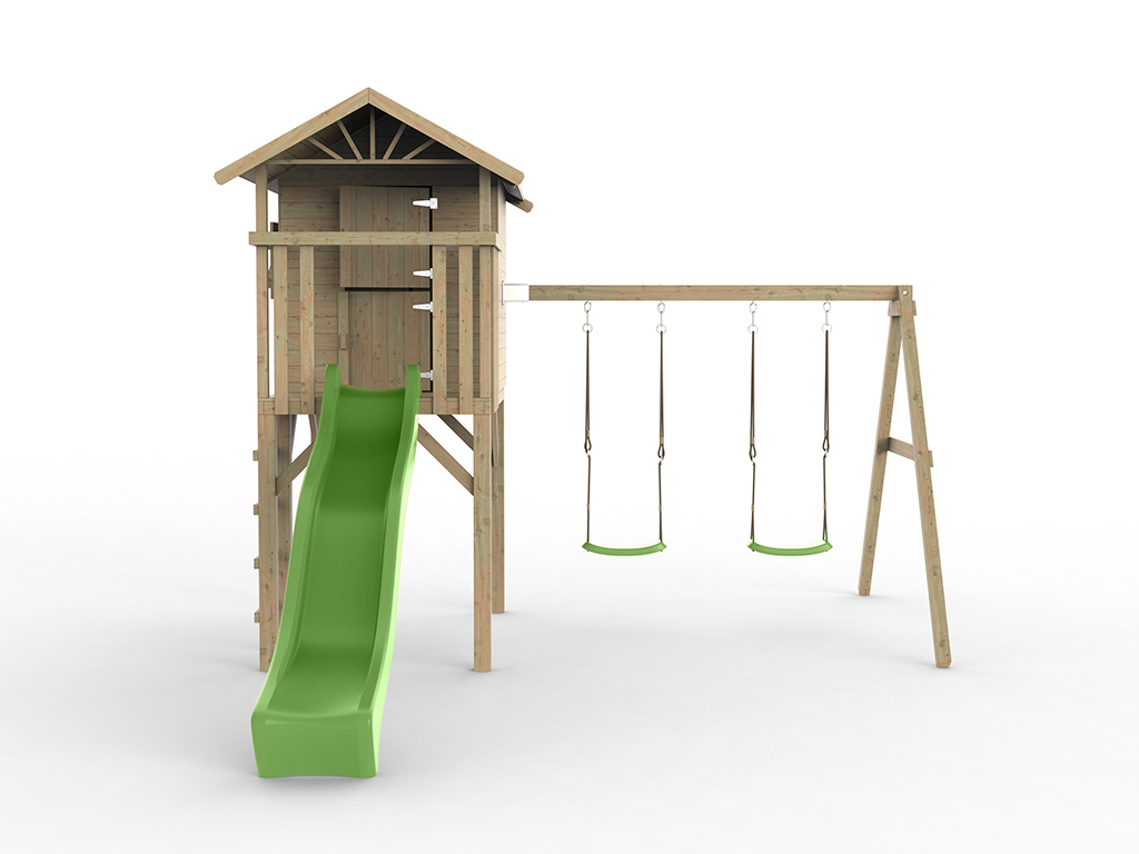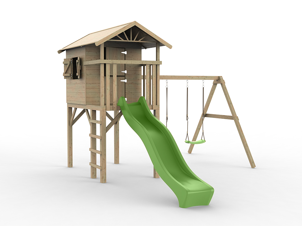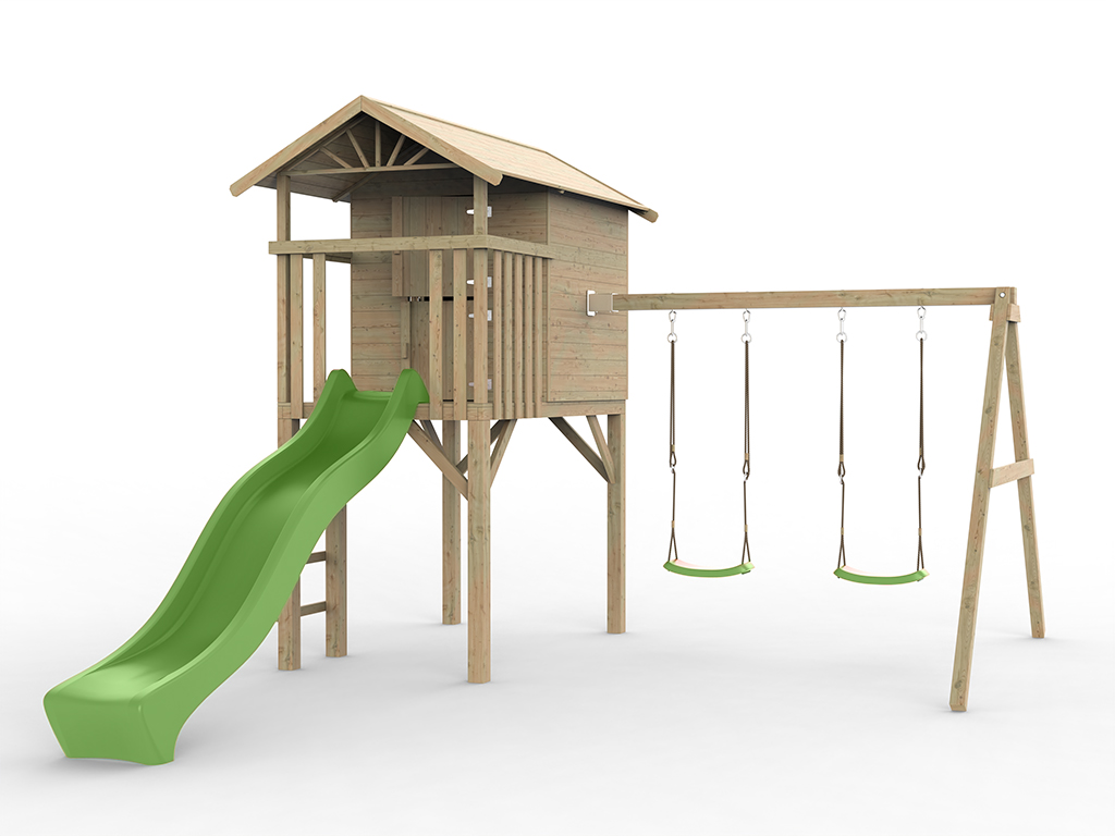 | Lieferumfang: | Stelzenhaus Tree Hut, Doppelschaukel, Rutsche grün |