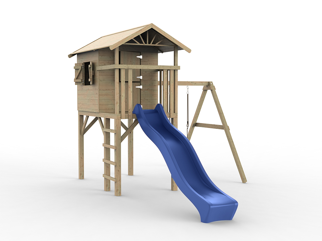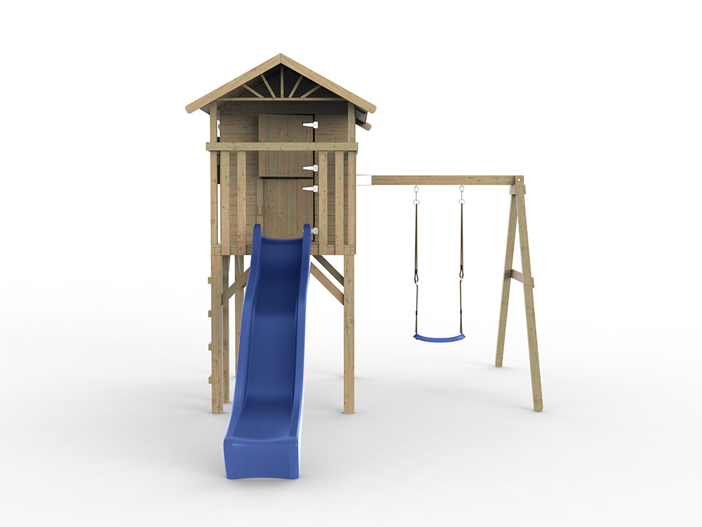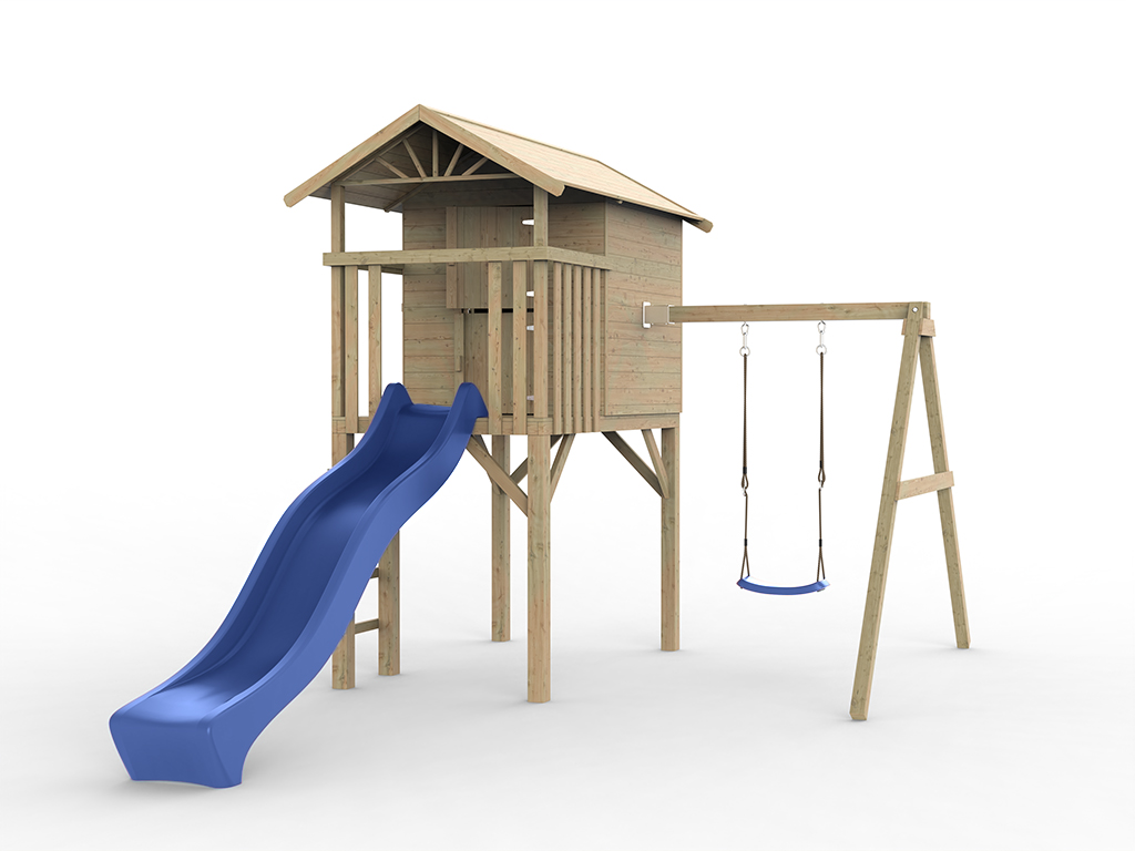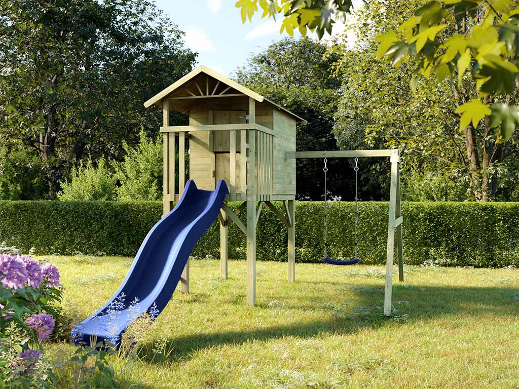 Stelzenhaus Tree Hut KDI inkl. Einzelschaukel und Rutsche blau