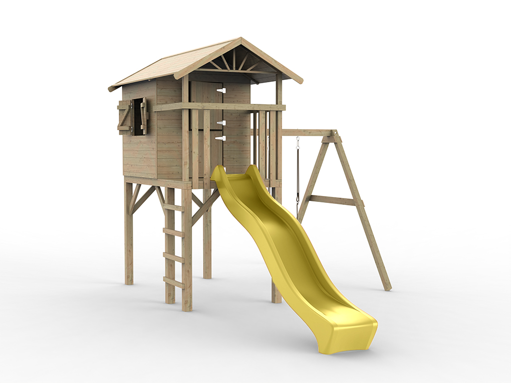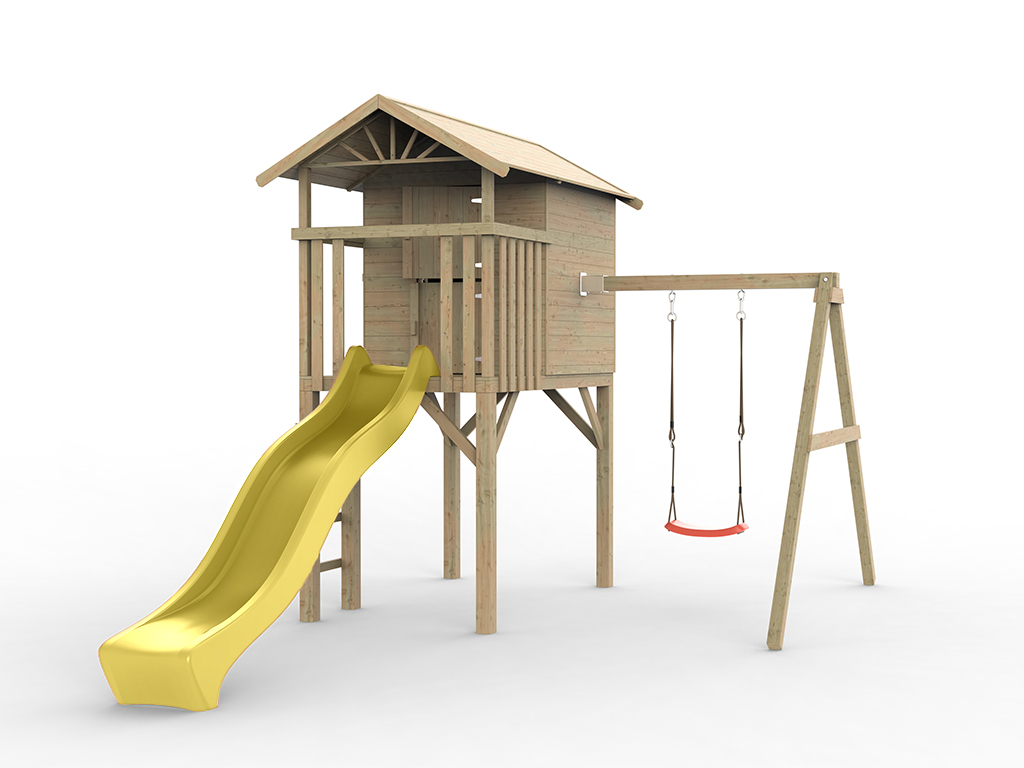 Stelzenhaus Tree Hut KDI inkl. Einzelschaukel und Rutsche gelb